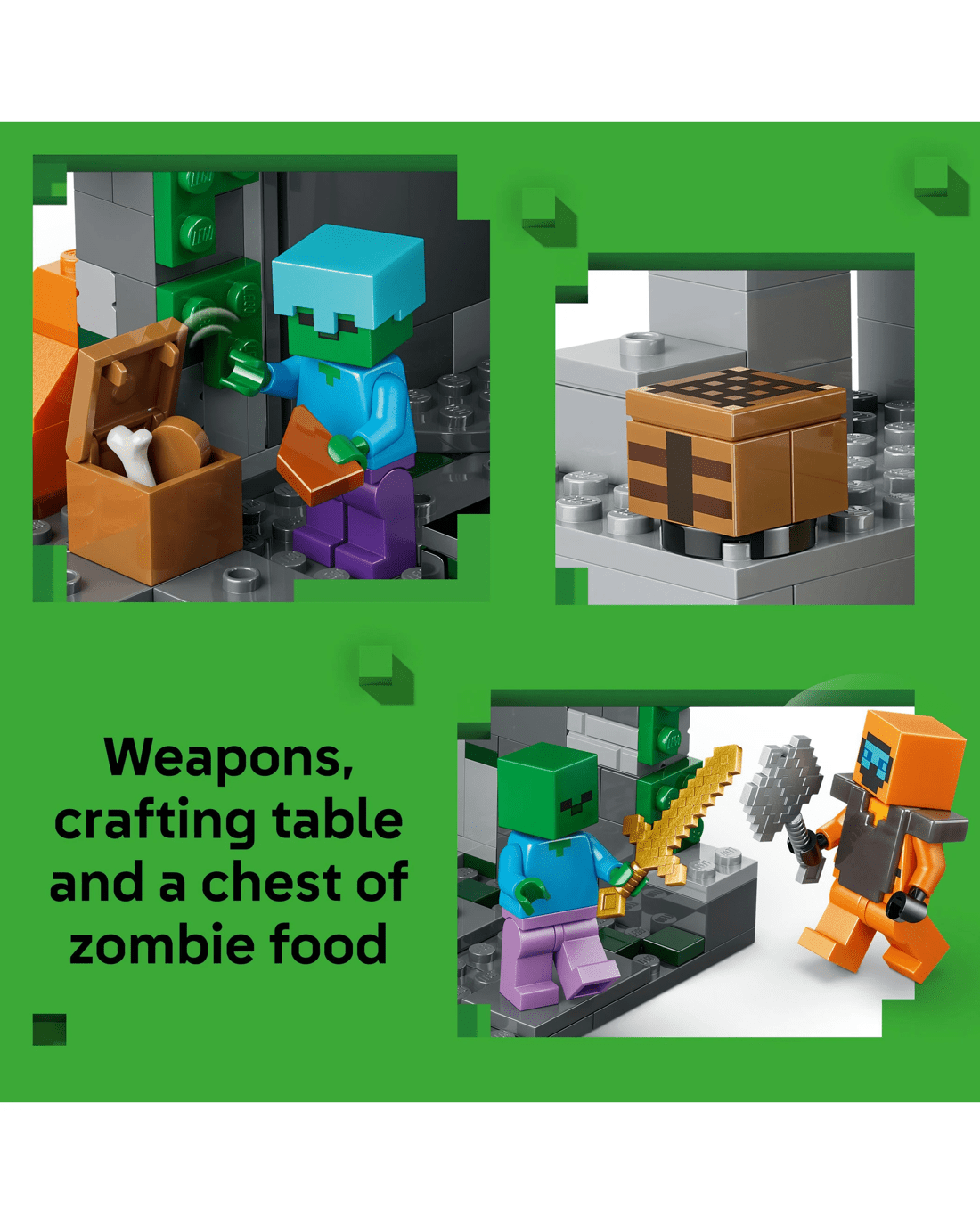 - Minecraft Zombie Dungeon Toy - Enter the LEGO Minecraft Zombie Dungeon if you dare, where boys and girls encounter action and gaming fun in a creative building set for kids