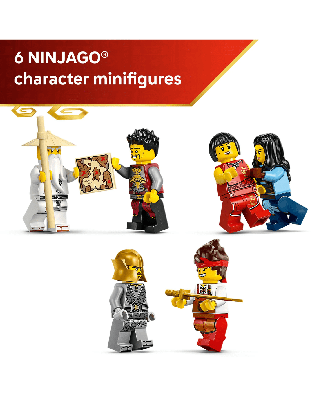- 6 NINJAGO Minifigures - This nostalgic set features characters from the TV show: Maya, Ray, Nya, Blacksmith Kai, Master Wu, plus, for the first time, a collectible elemental Master of Earth
