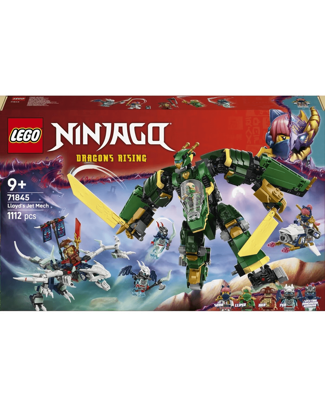 Lloyd's Jet Mech ninja toy building set lets boys and girls enjoy ninja adventures and battles in the air and on the ground as they recreate all-action scenes from season three of the NINJAGO Dragons Rising TV show.