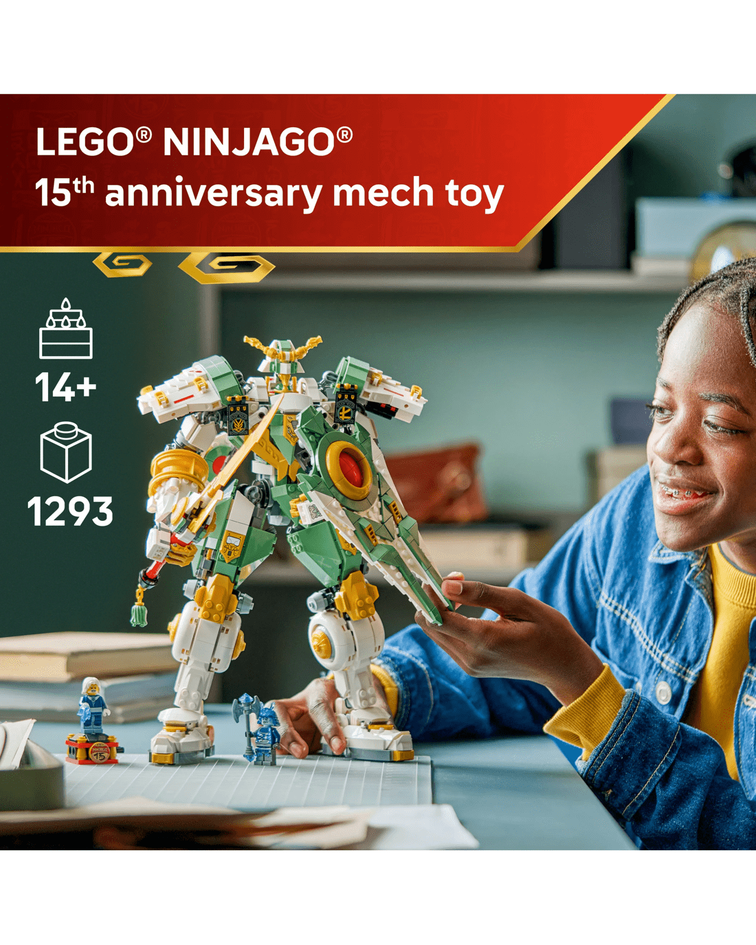 Teen boys, teen girls and nostalgic ninja fans can celebrate the 15th anniversary of the LEGO NINJAGO TV show with this highly impressive and feature-packed mech toy. The LEGO NINJAGO Lloyd’s Titan Mech 15th Anniversary action figure set is an upgraded version of the fan favourite original Lloyd’s Titan Mech model.