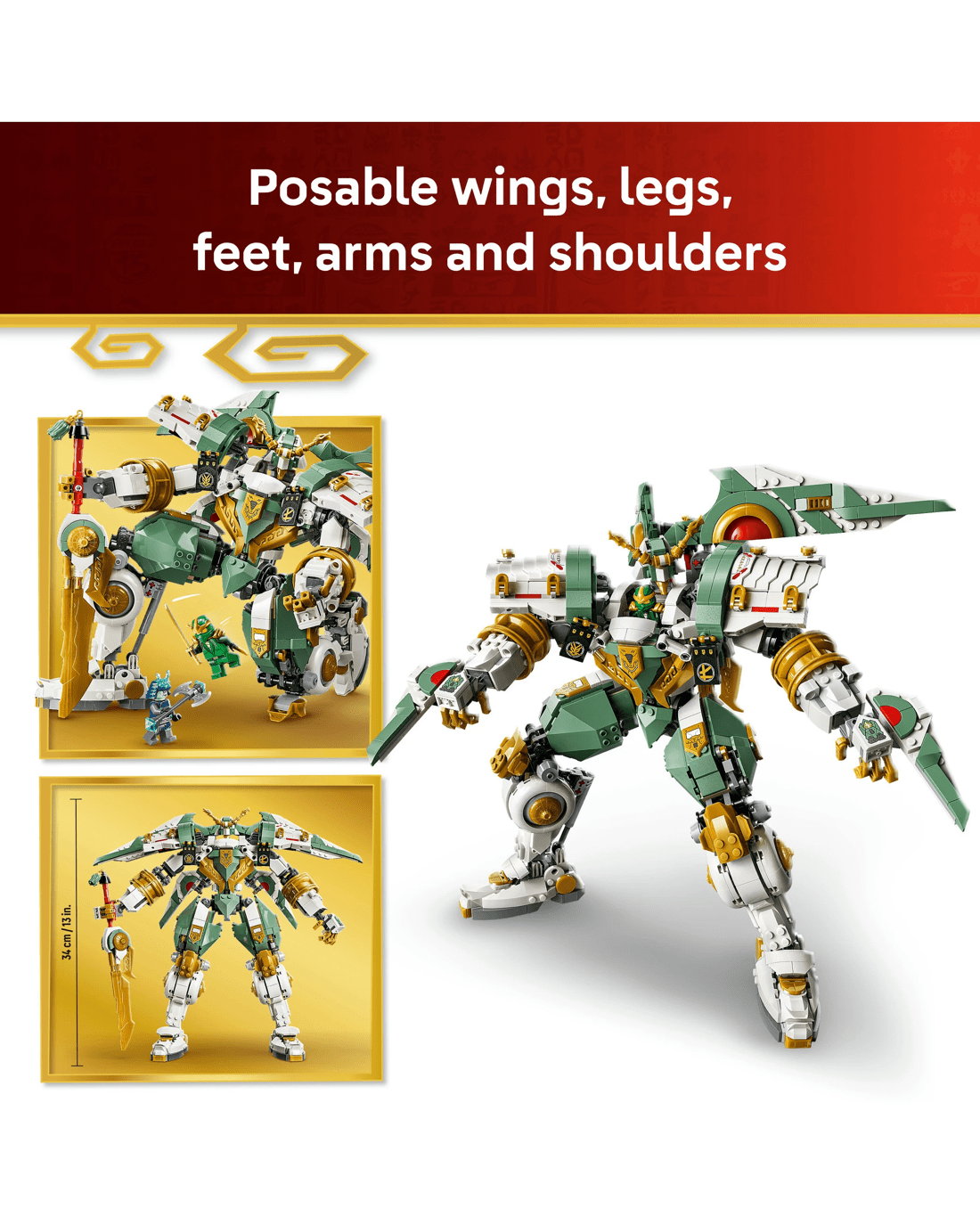 - Dimensions - This 1,293-piece NINJAGO adventure toy includes a mech action figure measuring over 32cm high