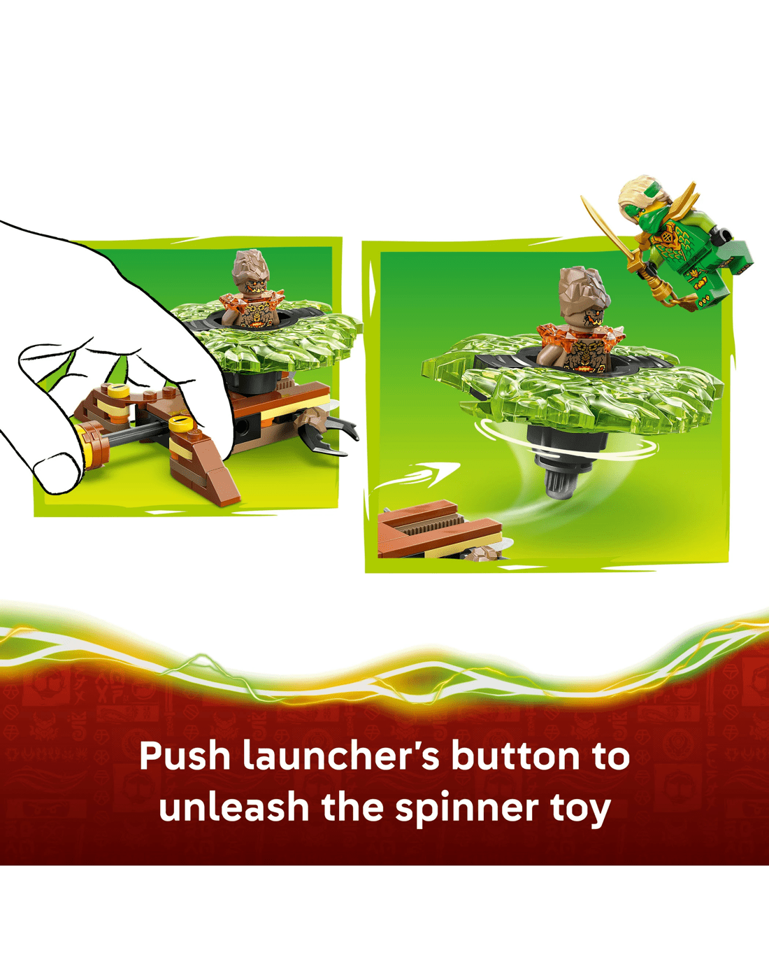 Boys and girls will love building this LEGO NINJAGO Lloyd vs. Earth Monster Spinner battle toy and recreating scenes from season four of the NINJAGO Dragons Rising TV show. Once it's built, kids can push the launcher's button to unleash the spinner toy into a quick spin and watch to see if the two elemental power parts fly off it when it hits its target.