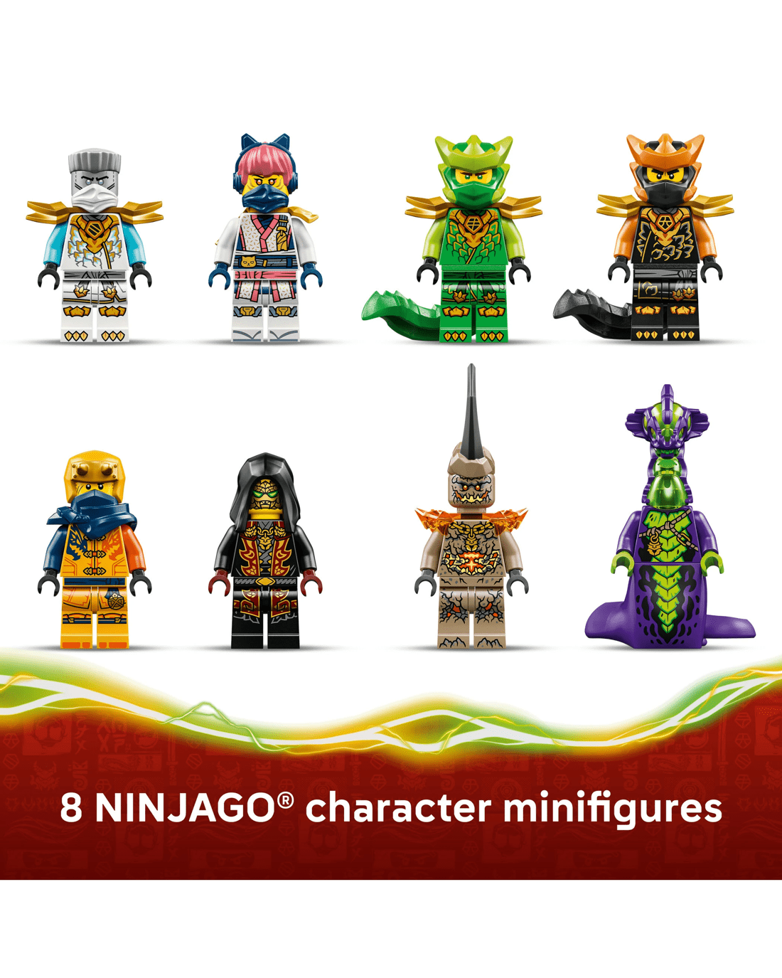 - 8 NINJAGO Minifigures - Kids' adventure toy comes with Zane, Sora, Arin, dragon form Lloyd, dragon form Cole, Acid Monster, Earth Monster and Loyalist Leader for action-packed imaginative play