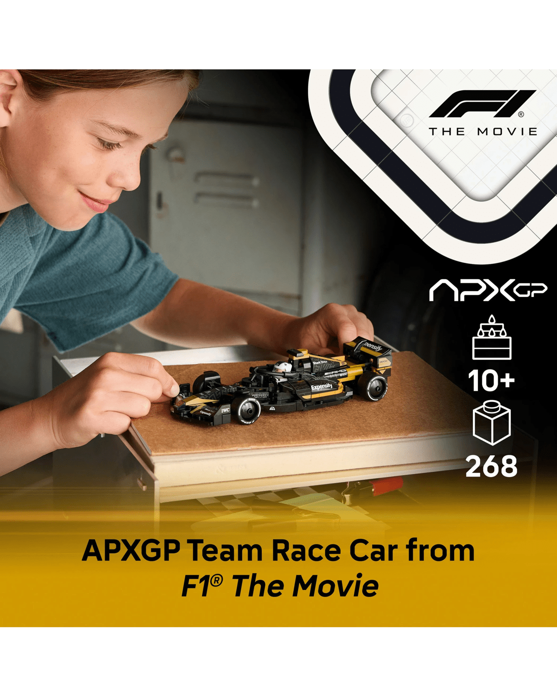 - F1 the Movie Toy Car - LEGO Speed Champions APXGP Team Race Car from F1 The Movie model car kit for boys and girls to build, display and use to recreate movie scenes