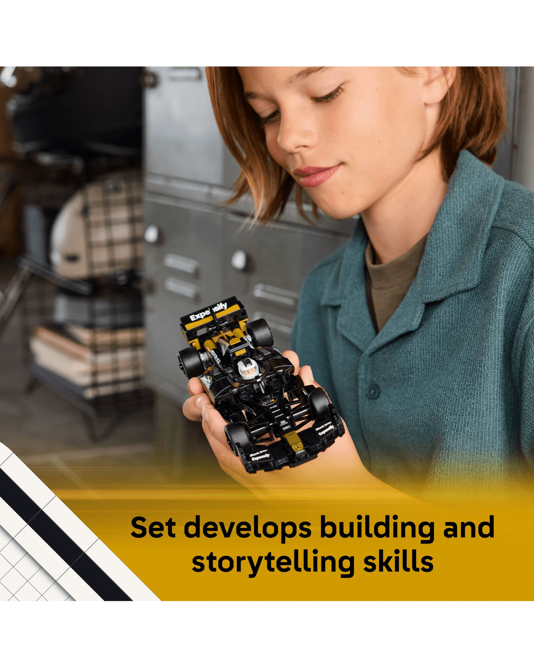 - Teen Room Decor - After boys and girls have enjoyed a rewarding build, they can proudly display this Formula 1 car in their room on a shelf, desk or bedside table