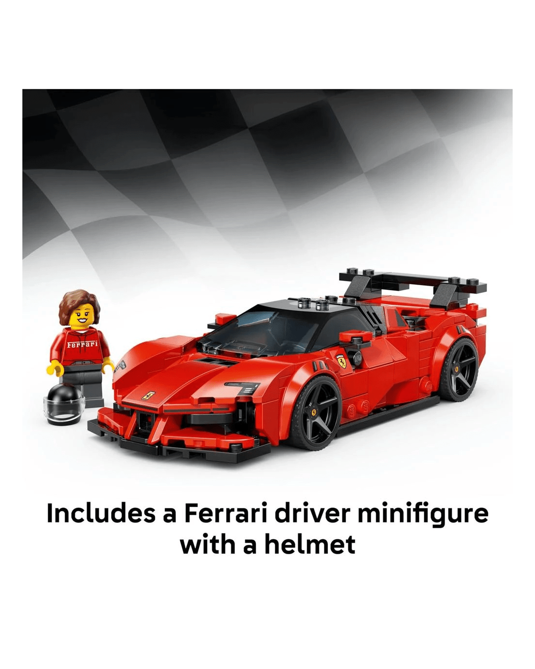 - 1 Driver Minifigure - This model car kit includes a driver minifigure wearing a Ferrari outfit and helmet, and includes a wig and a wrench that can also be used to apply stickers and separate bricks