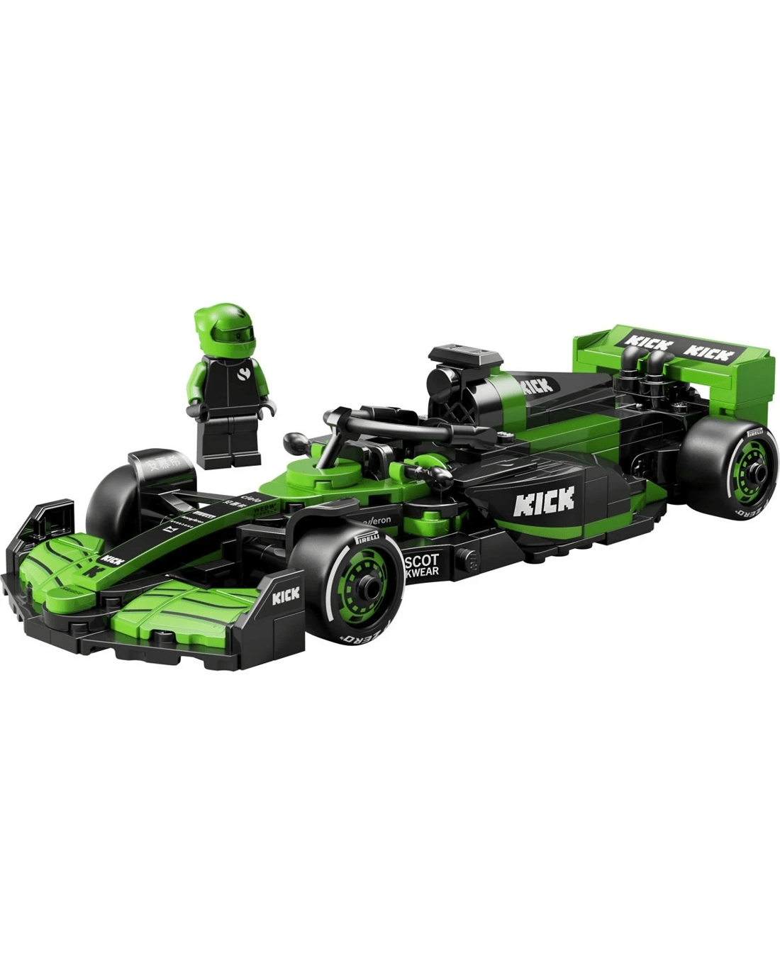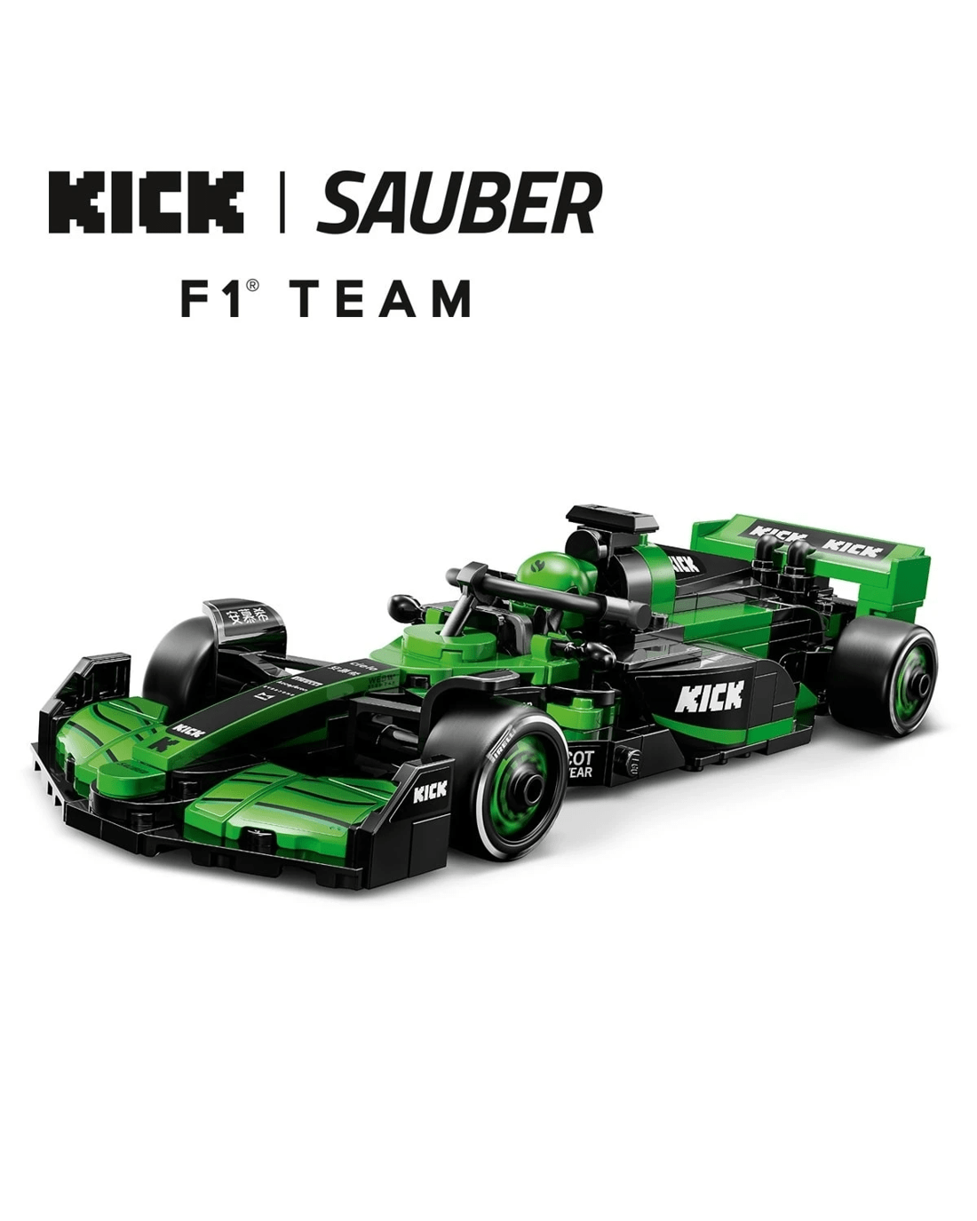 - 1 minifigure - The vehicle set includes a driver minifigure wearing a KICK Sauber F1 Team outfit and a winged helmet for kids to place inside the cockpit and role-play thrilling race action
