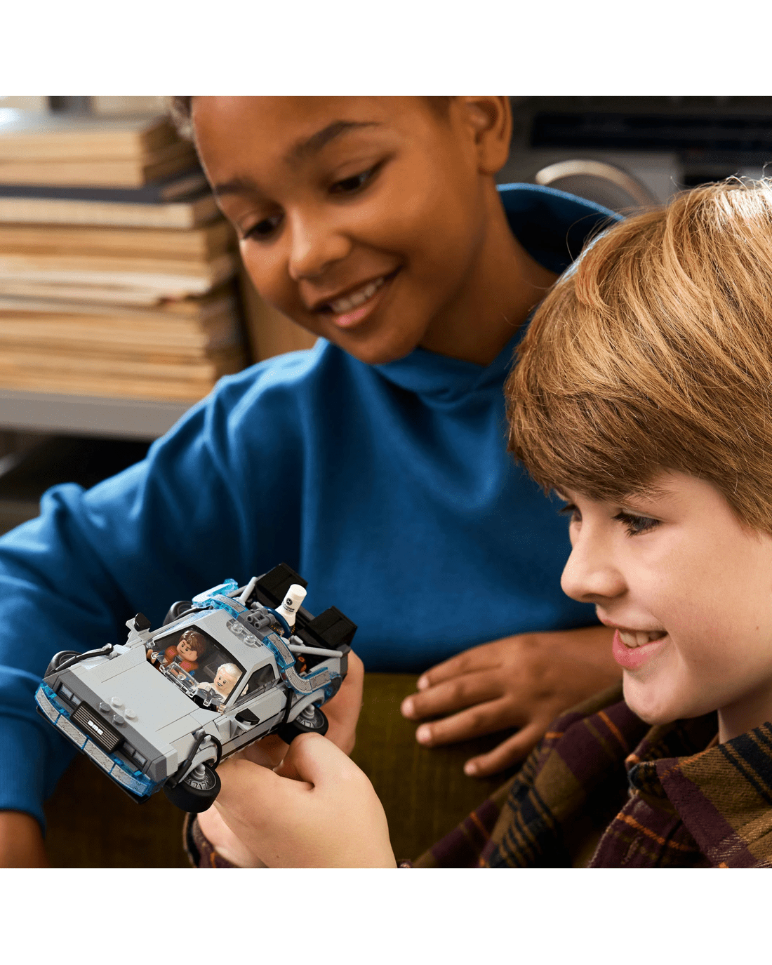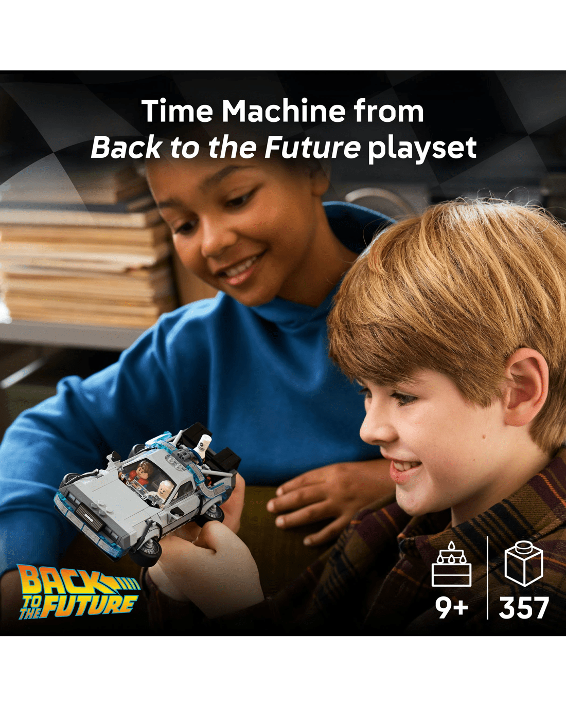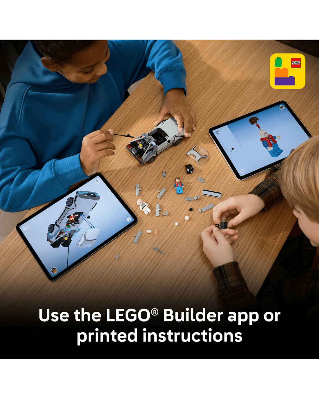 For added play value, the playset also comes with two minifigure characters from the movies: Doc Brown and Marty McFly to place inside the cockpit. A great gift for kids and nostalgic adults, they can build each playset with confidence using the LEGO Builder app, which lets them zoom, rotate in 3D and track progress with easy-to-follow digital instructions. Set contains 357 pieces.