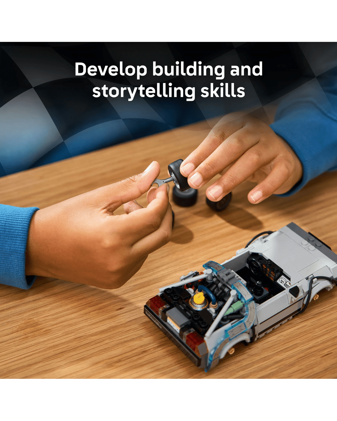 LEGO Speed Champions Time Machine from Back to the Future model car kit lets kids build, display and recreate action from the iconic movie franchise. This brick-built toy car includes many of the famous details from the model seen in the popular movies.