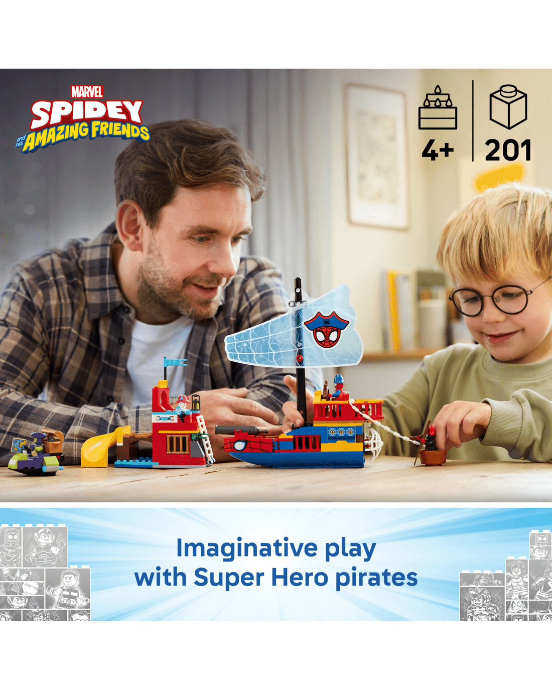 - Super Hero Pirate Ship - All aboard the Webs Ahoy when Green Goblin steals a treasure chest in this LEGO Marvel Team Spidey Pirate Ship adventure for boys, girls and kids