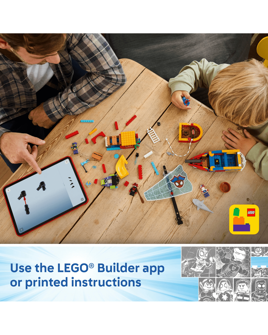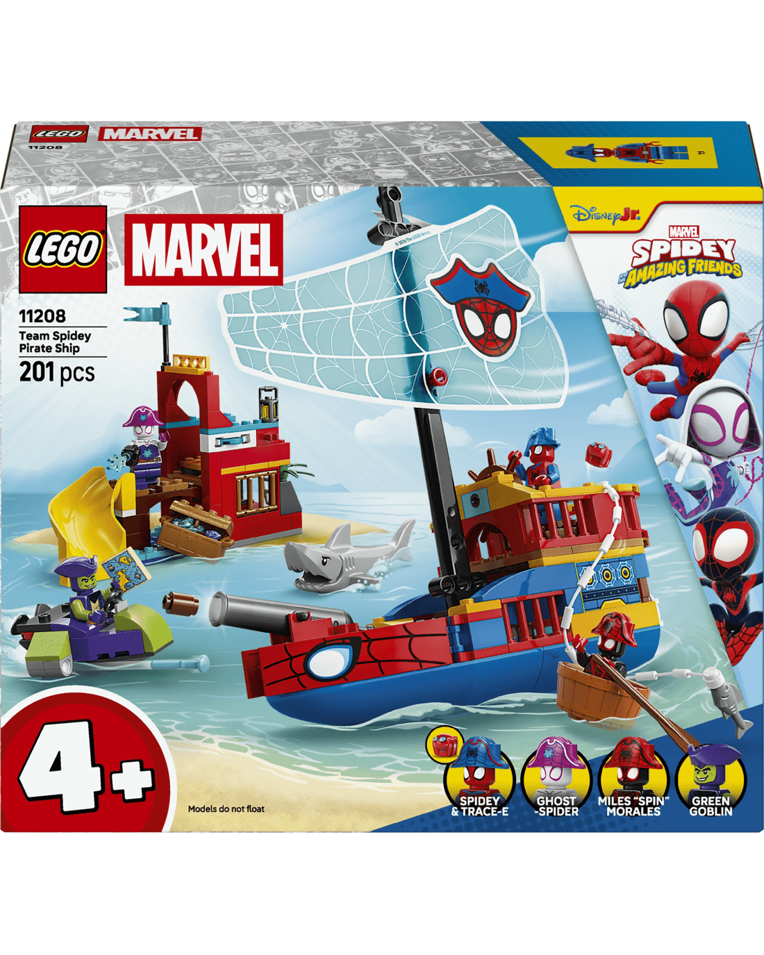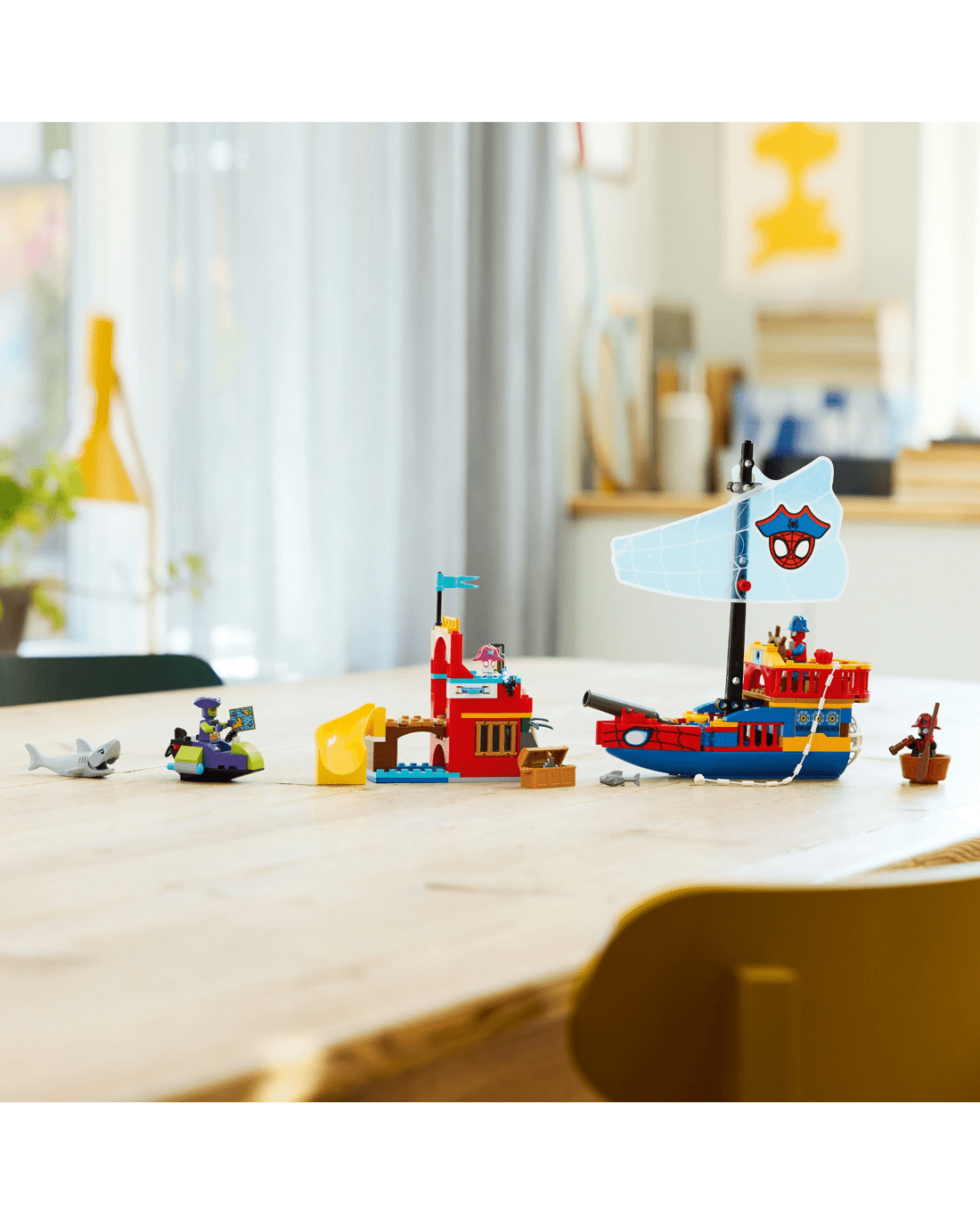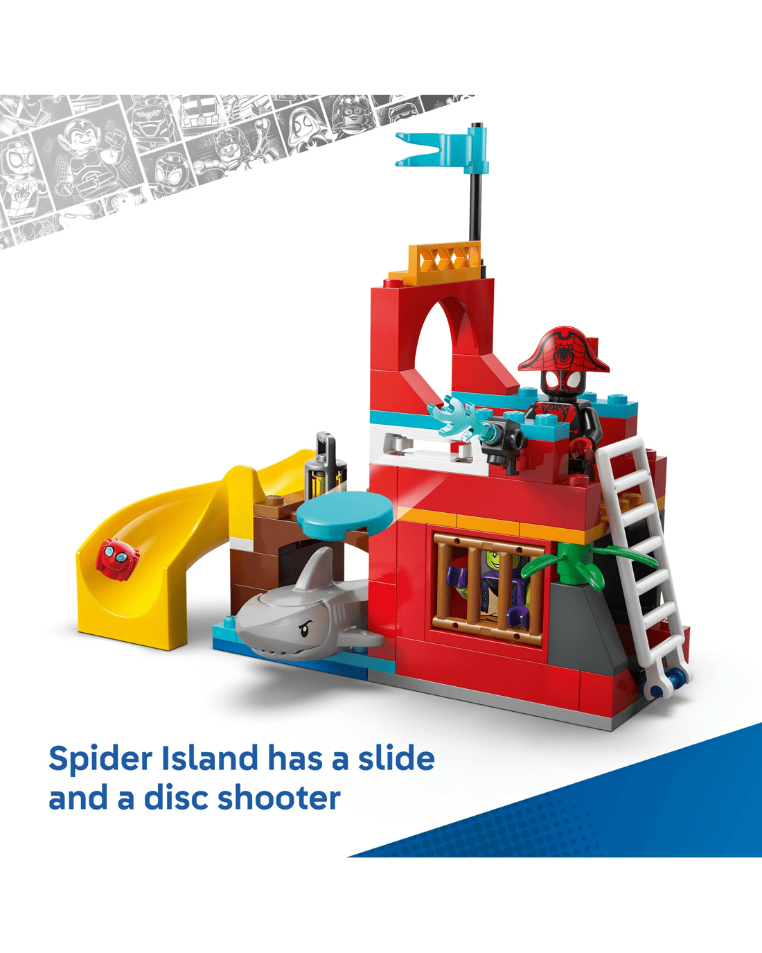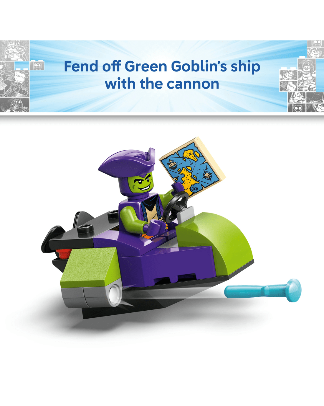 - 4 Minifigures - Join Spidey, Ghost-Spider, Miles 'Spin' Morales, Green Goblin and Trace-E for fun on a pirate ship, Spider Island and 2 other small boats in this action-packed building toy