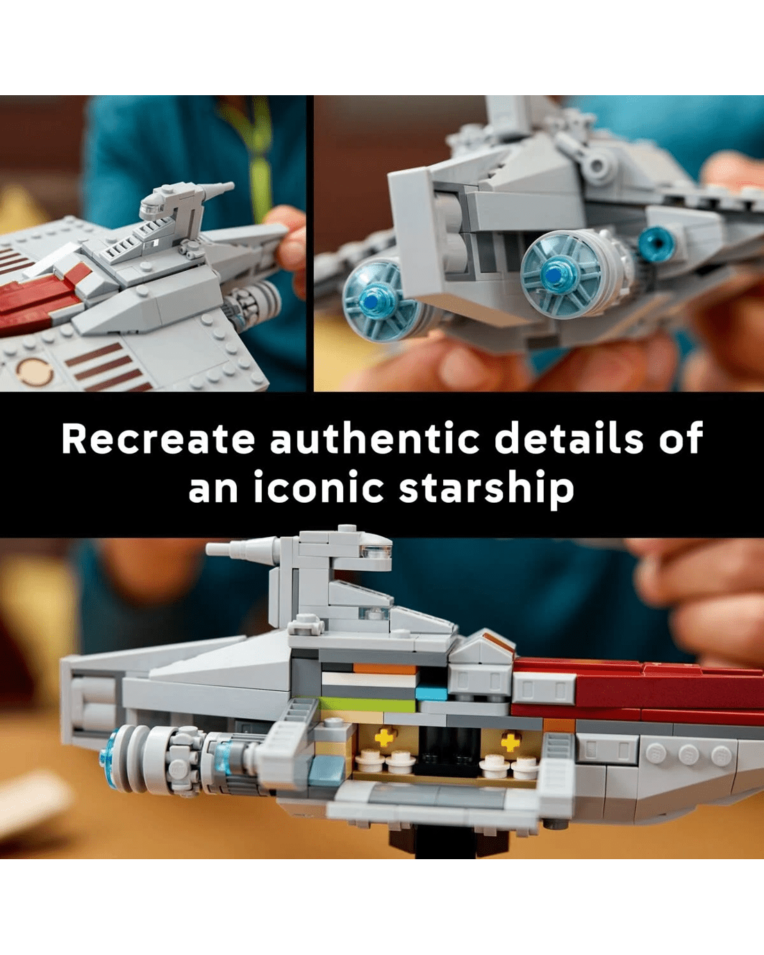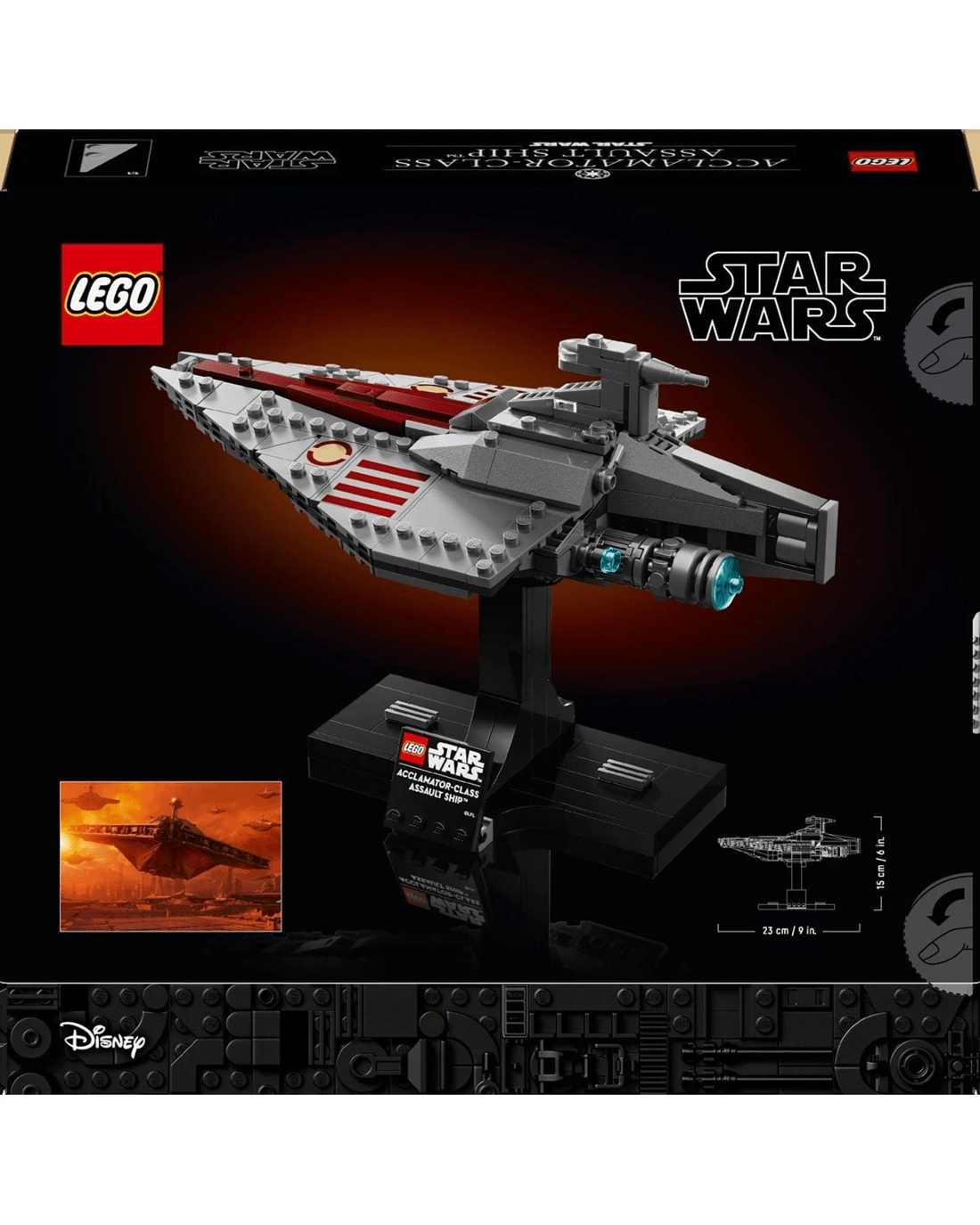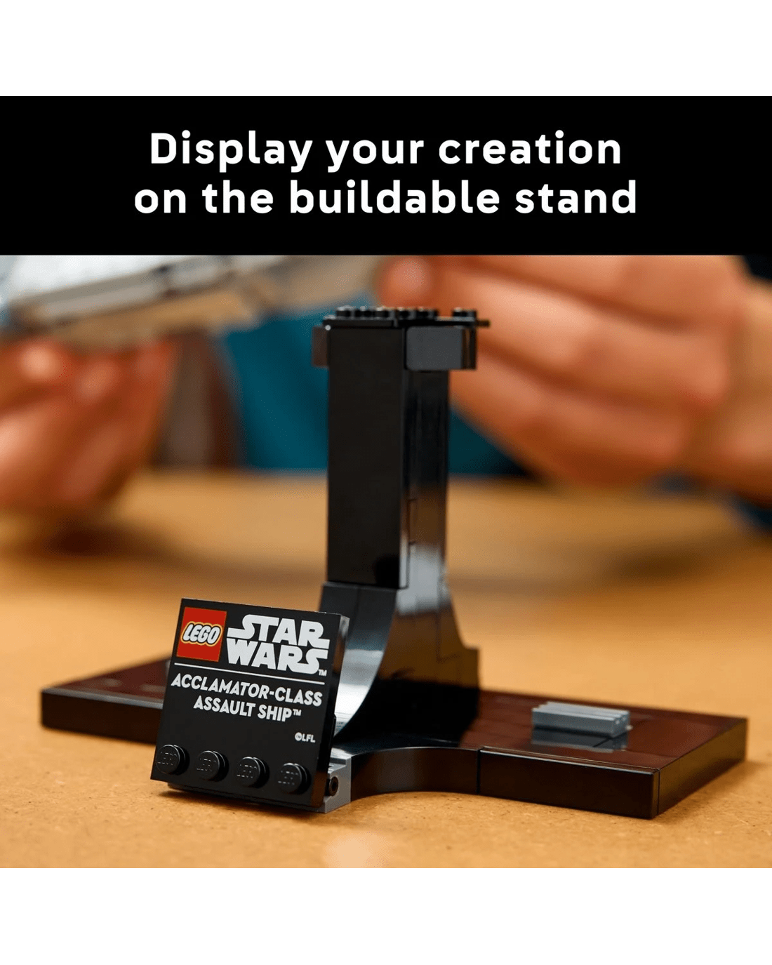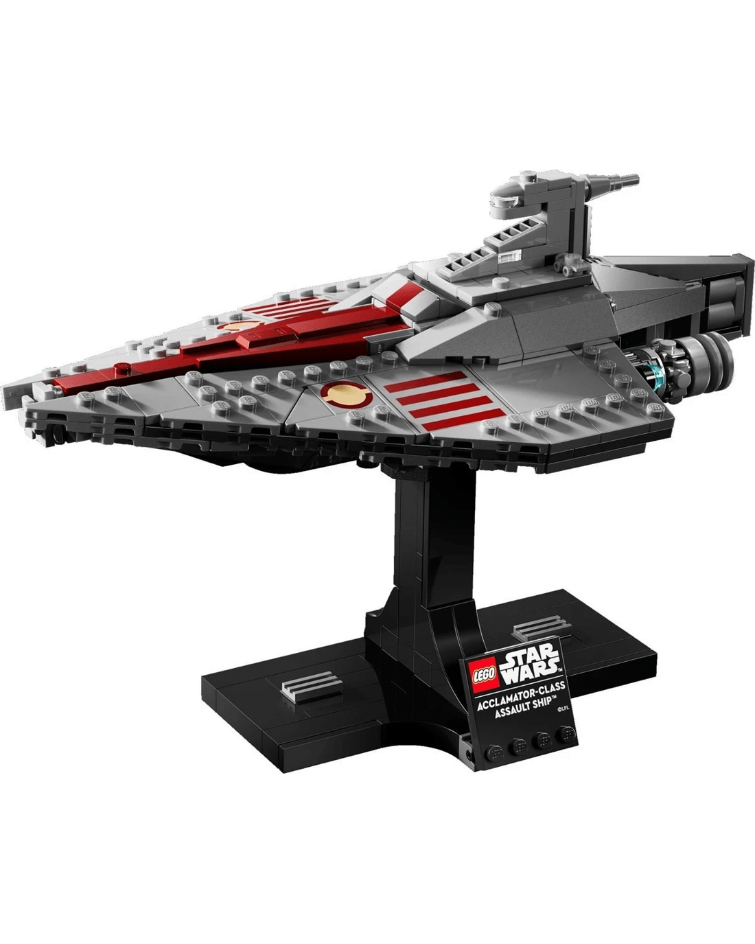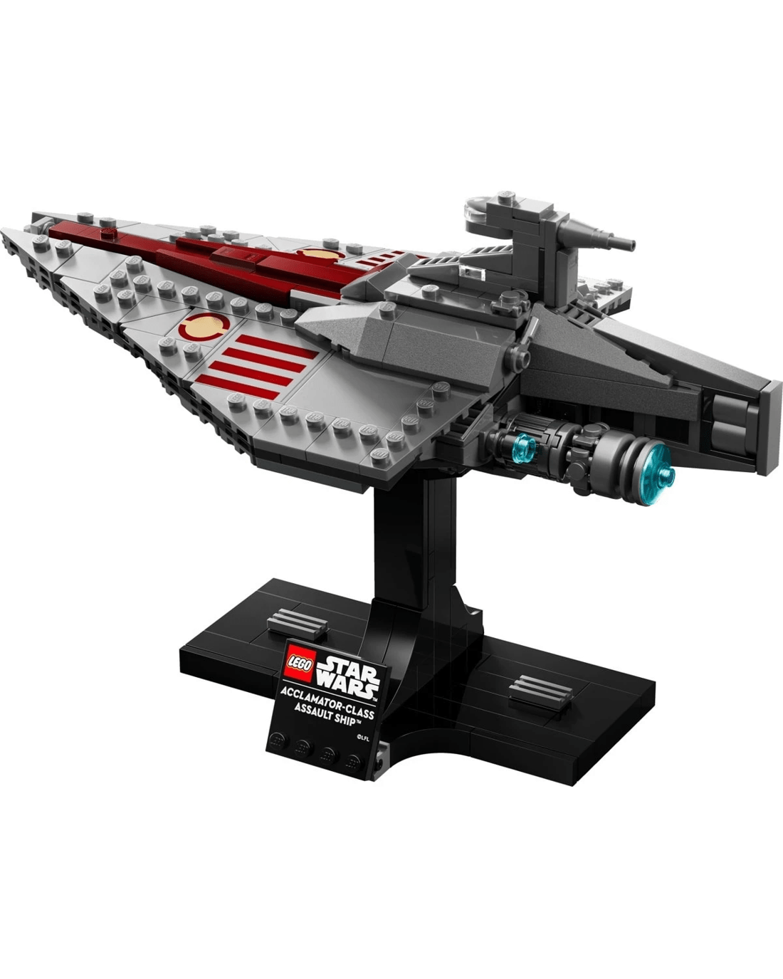 - Build-and-display starship model - Relive dramatic Battle of Geonosis scenes as you build a mid-scale LEGO Star Wars recreation of an Acclamator-Class Assault Ship