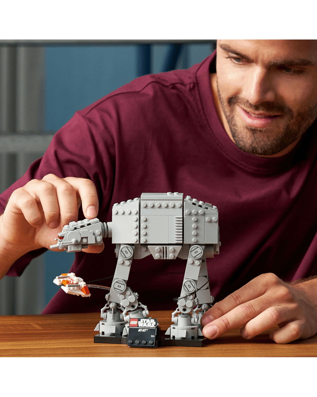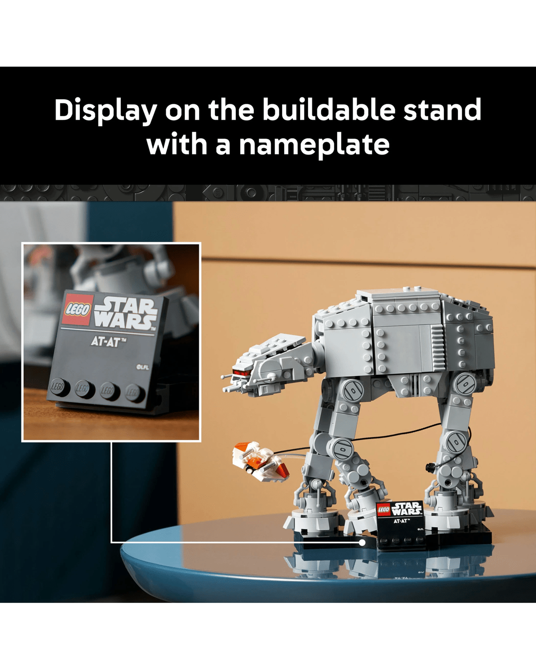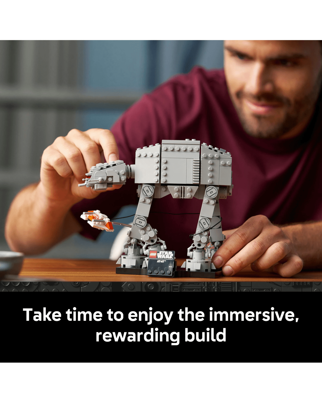 Bring the drama of the Battle of Hoth into your home with this dynamic AT-AT building set for adults. Recreate authentic details of the iconic AT-AT walker, as deployed by the ground forces of the Galactic Empire. Add a Rebel Alliance snowspeeder in flight, wrapping its tow cable around the AT-AT’s legs as in the thrilling Star Wars: The Empire Strikes Back scene. Enjoy quality time immersing yourself in this nostalgic, rewarding build, and display your creation on the stand with a nameplate.