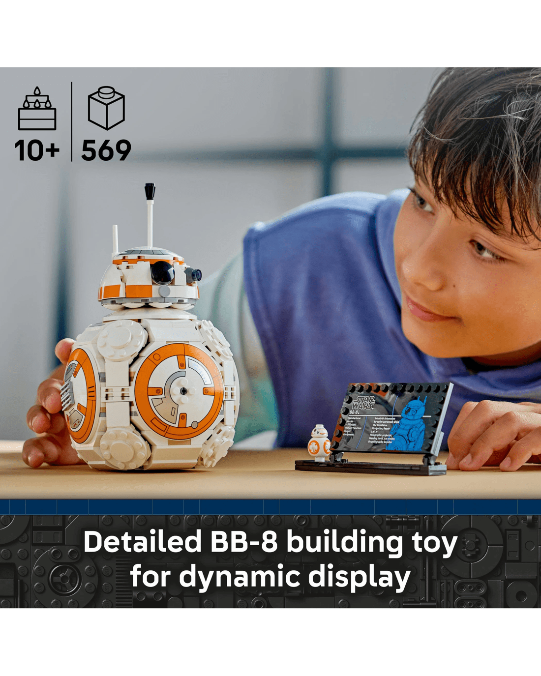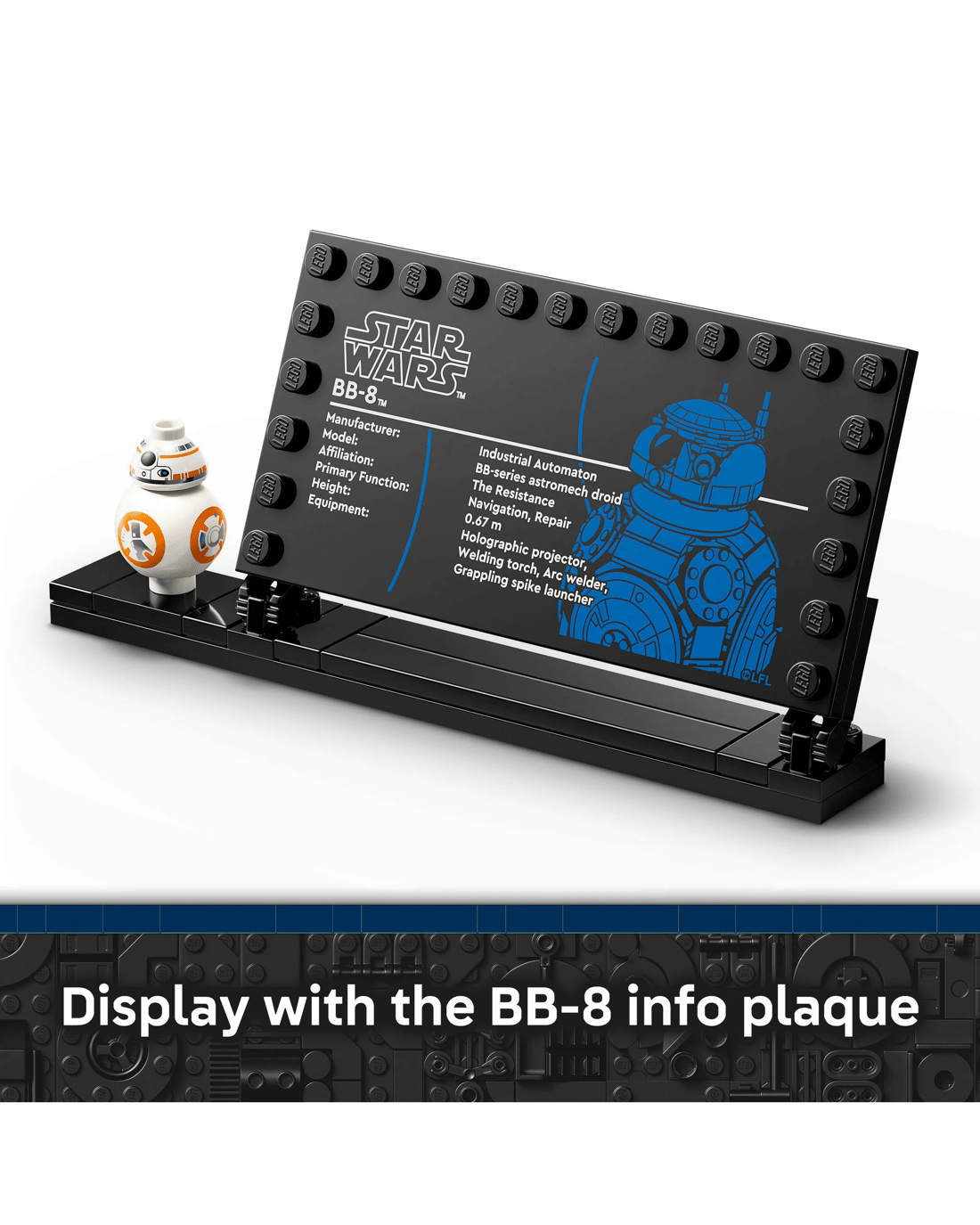 Place the buildable model alongside the BB-8 info plaque and standard-sized BB-8 LEGO figure to create adorable Star Wars decor that will bring a smile to any fan's face.