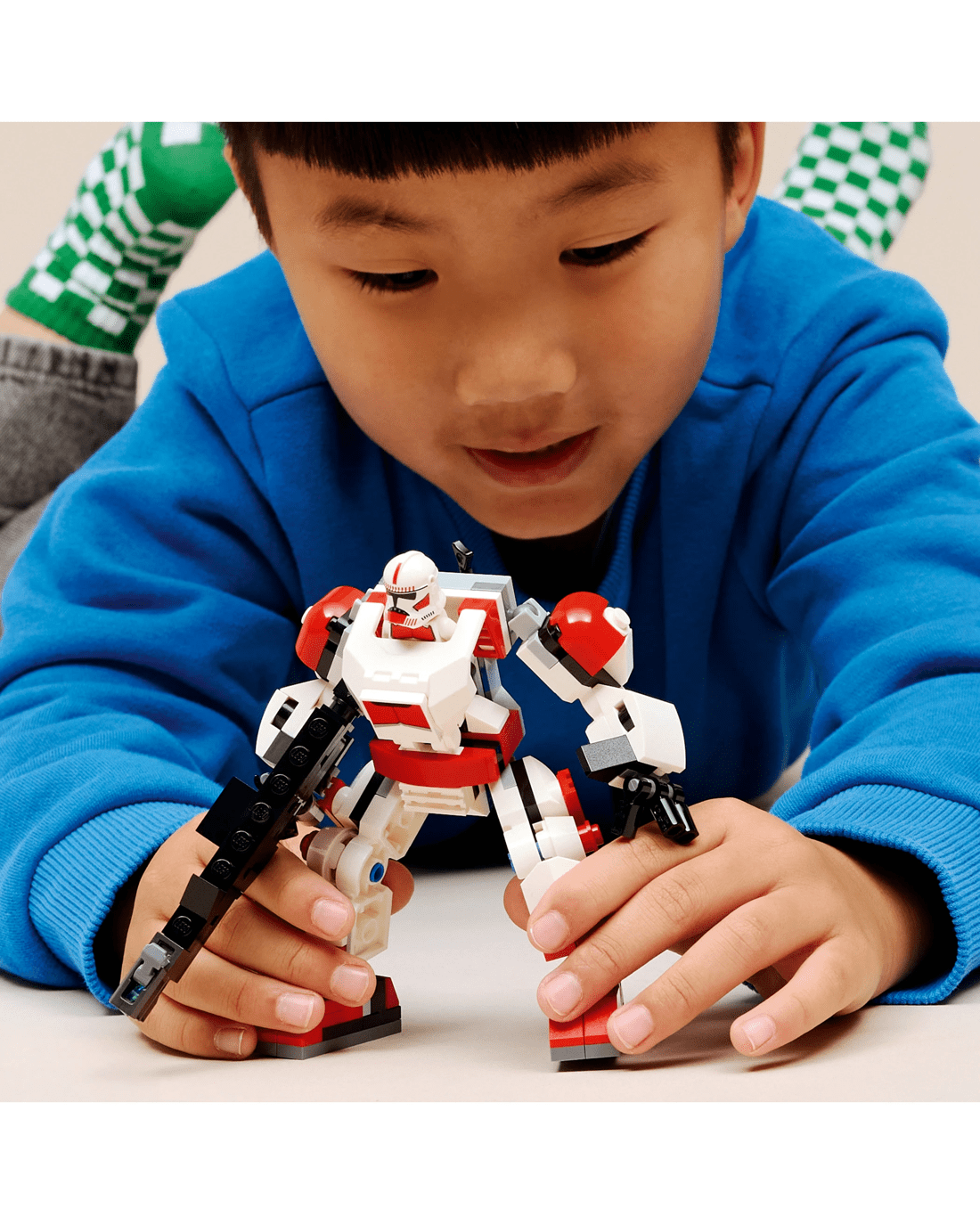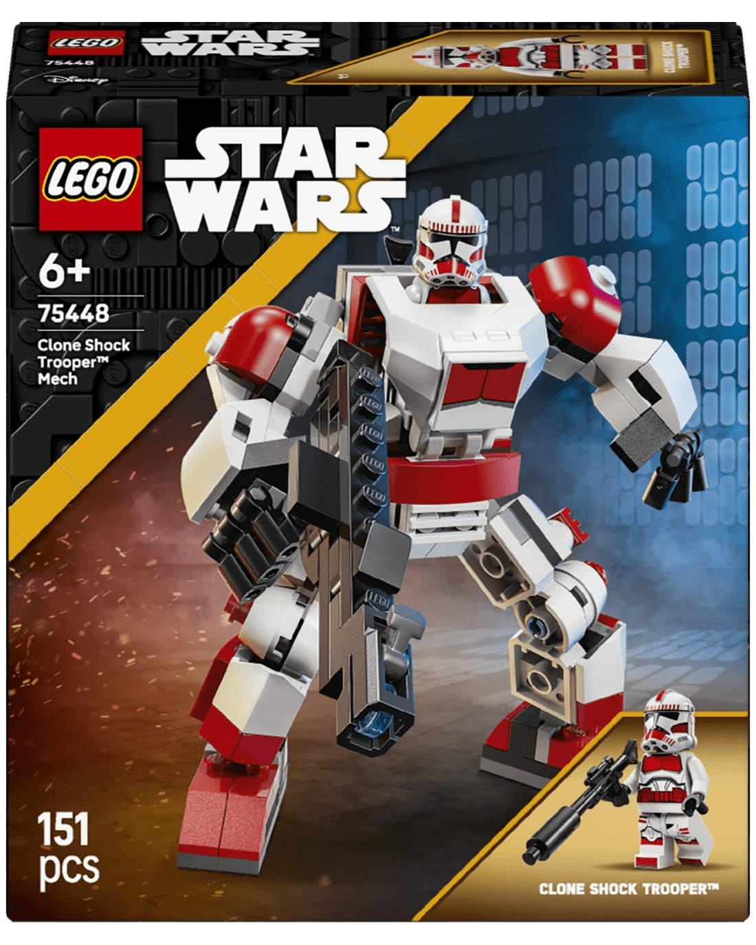 - Mech Toy Building Set - Introduce kids to action-packed play in the LEGO Star Wars universe with this quick-build, posable Clone Shock Trooper Mech figure