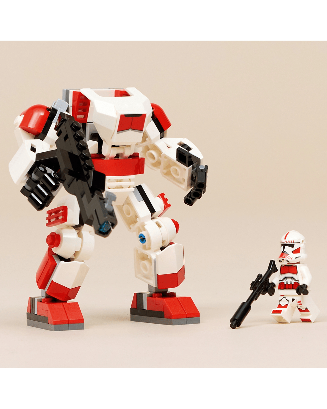 - LEGO Star Wars Minifigure - Place the Clone Shock Trooper LEGO minifigure in the armoured mech's cockpit and clip its blaster rifle to the back of the mech