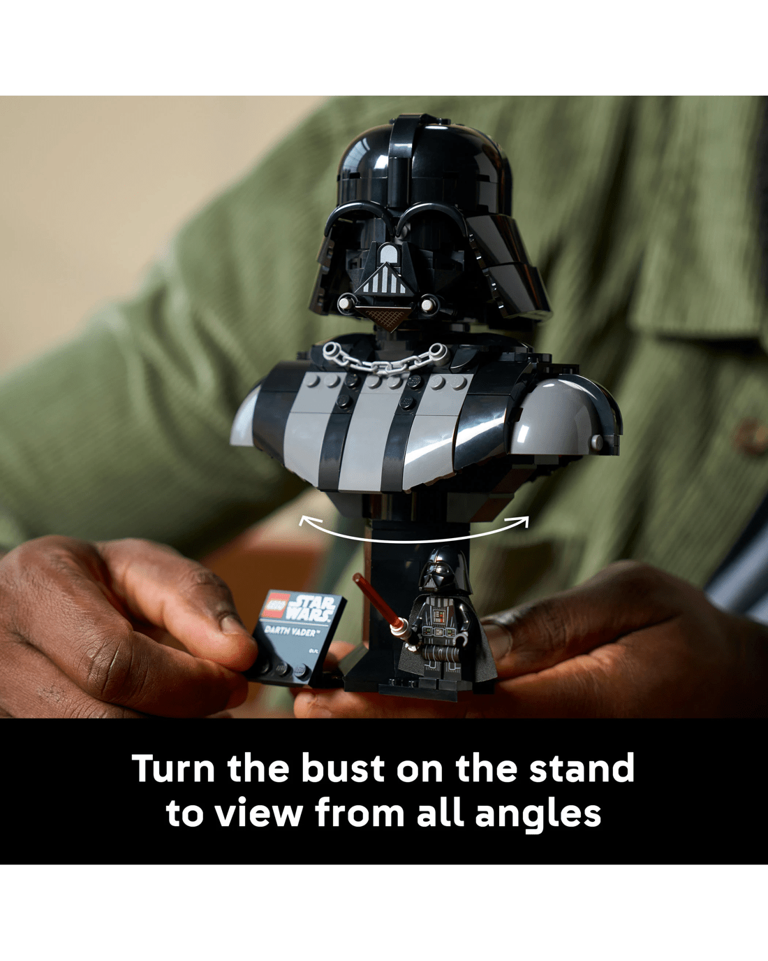 - Designed for Display - Place your creation on the buildable stand (with nameplate) alongside the Darth Vader LEGO minifigure and turn the bust on the stand to view from all angles