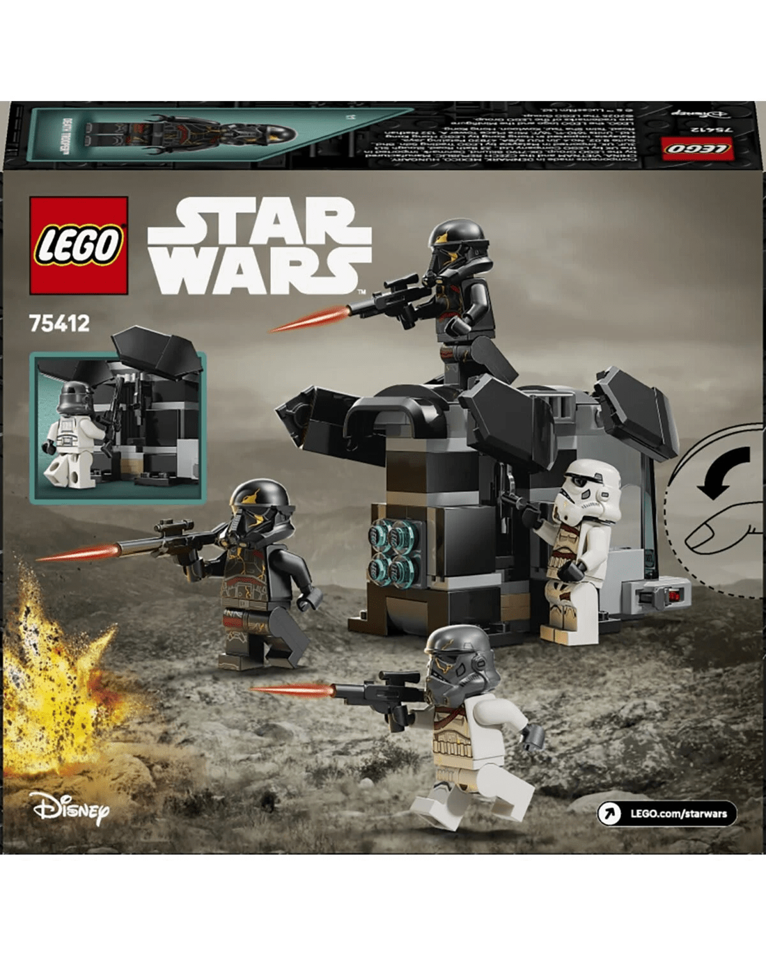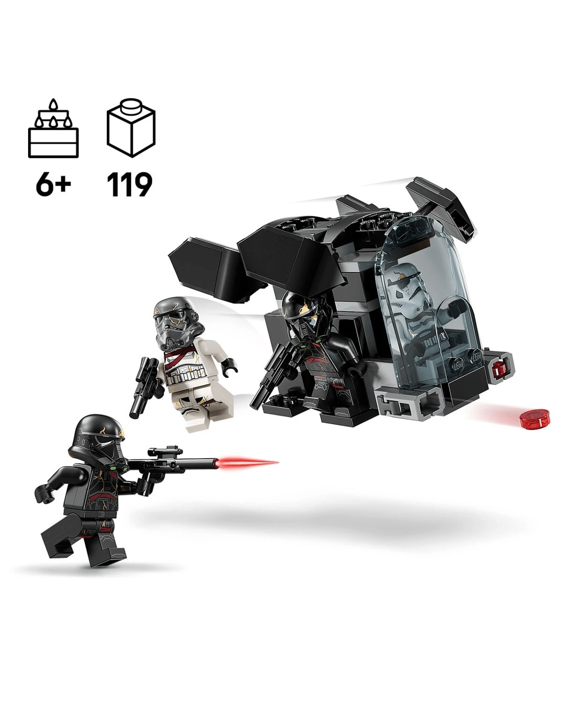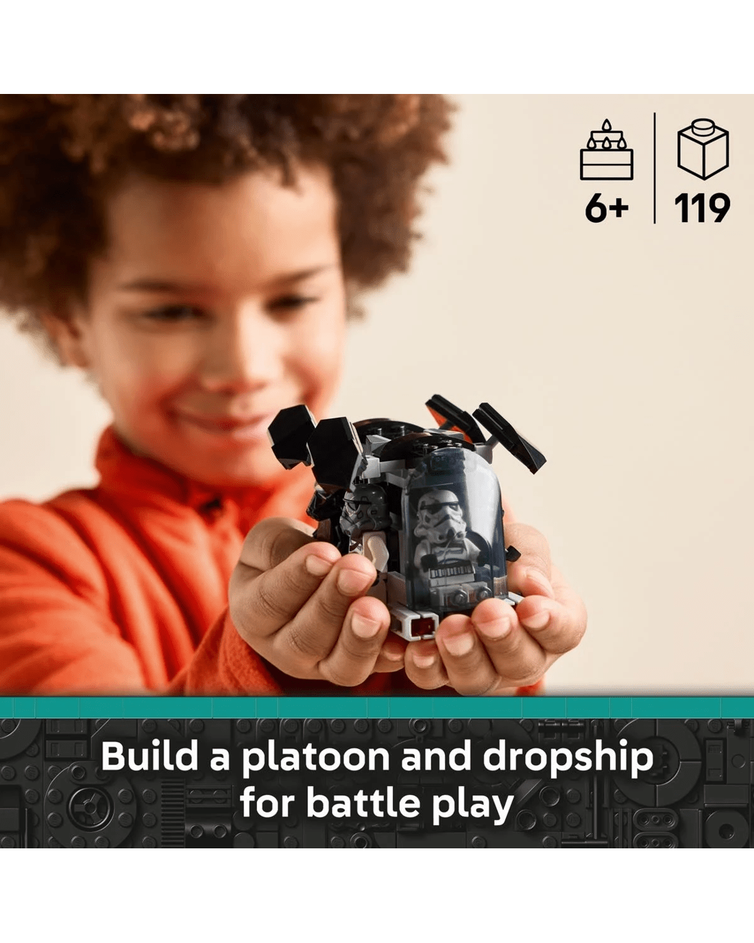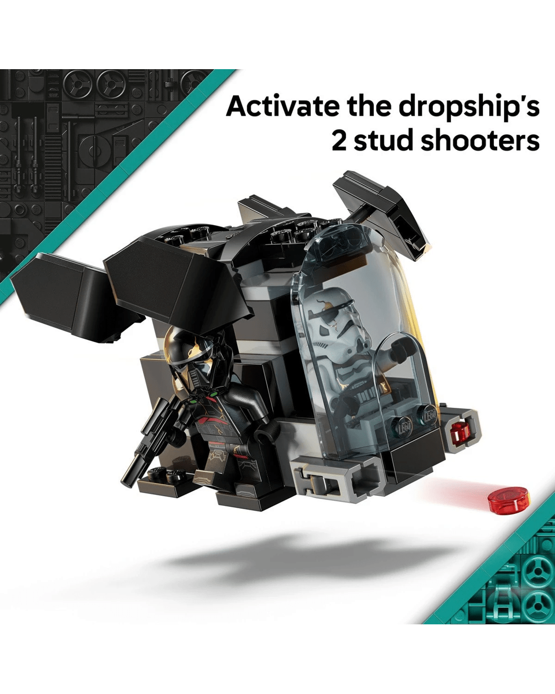 Let kids build their own platoon and transport them into LEGO Star Wars: Ahsoka battles with the Death Trooper & Night Trooper Battle Pack. A cool small gift for boys, girls and any fans, the set includes a dropship building toy with space for four LEGO minifigures in the back, two stud shooters and a LEGO minifigure cockpit with a removable canopy. The four included LEGO Star Wars minifigures - two Death Troopers and two Night Troopers - each have a blaster that can be attached next to them in the back of the dropship, ready for pretend-play battles.