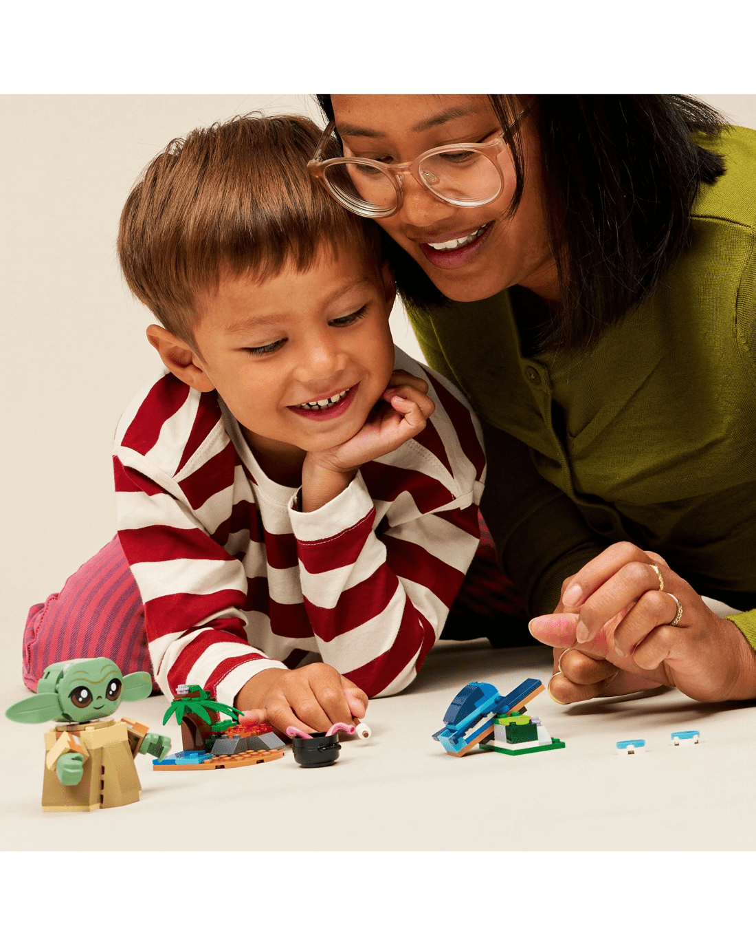 Give kids an inspiring first build-and-play experience in the LEGO Star Wars universe with this toy building set: Grogu's Homestead. A great small gift for preschool boys, girls and Star Wars fans, it features an easy-to-build, posable Grogu figure, a Sorgan frog, two mini builds plus authentic accessories.