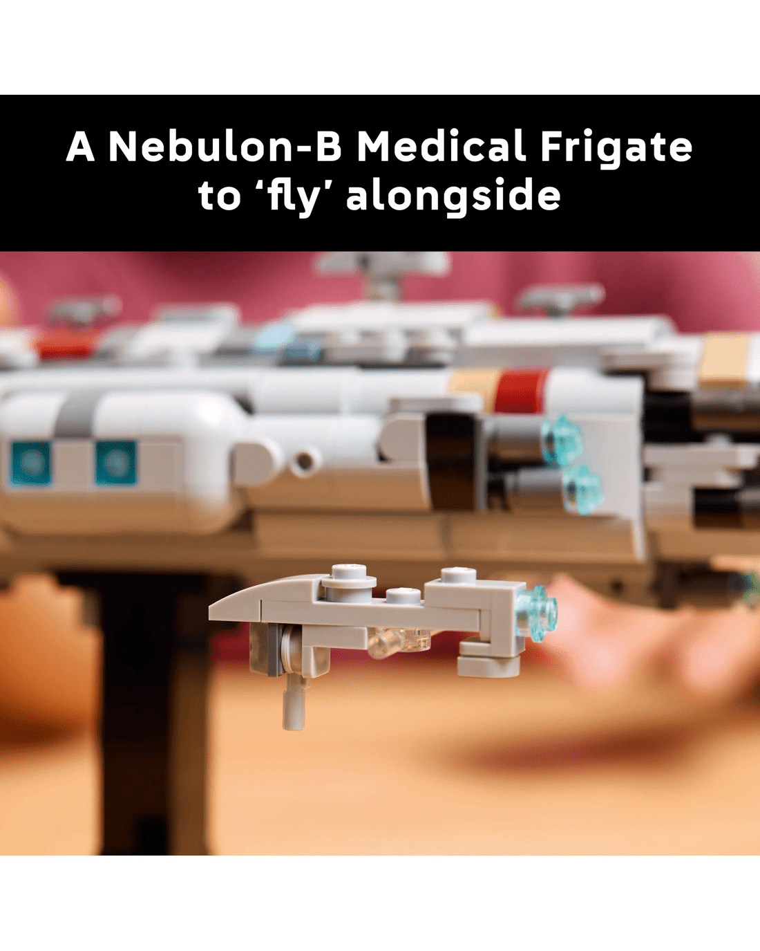 Inspire nostalgia for Star Wars: Return of the Jedi with the first-ever LEGO Star Wars brick-built model of the Home One Starcruiser commanded by Admiral Ackbar at the Battle of Endor. A fun Star Wars gift for adults, this buildable starship model kit offers a complex, rewarding creative experience. Recreate authentic features of the Rebel Alliance fleet's flagship frigate and display it on the buildable stand with a nameplate. The side section can be detached to view interior details and the set also includes a small, brick-built Nebulon-B Medical Frigate that can be displayed 'flying' alongside Home One.