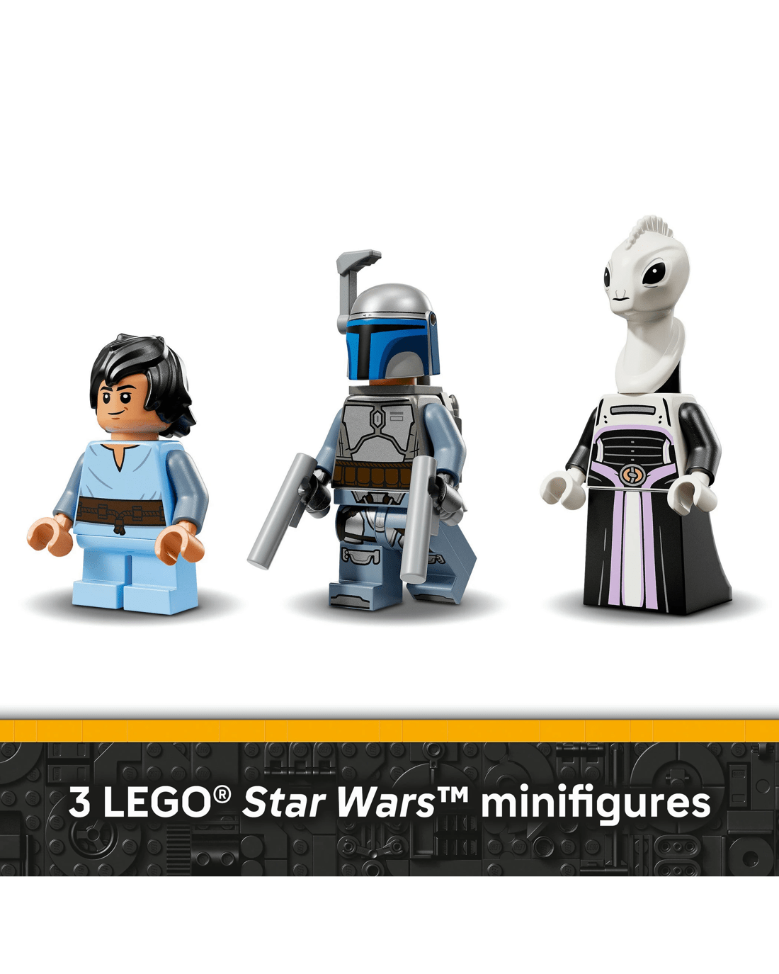 - 3 LEGO Star Wars minifigures - Jango Fett with 2 blaster pistols and a jetpack, Young Boba Fett and Lama Su