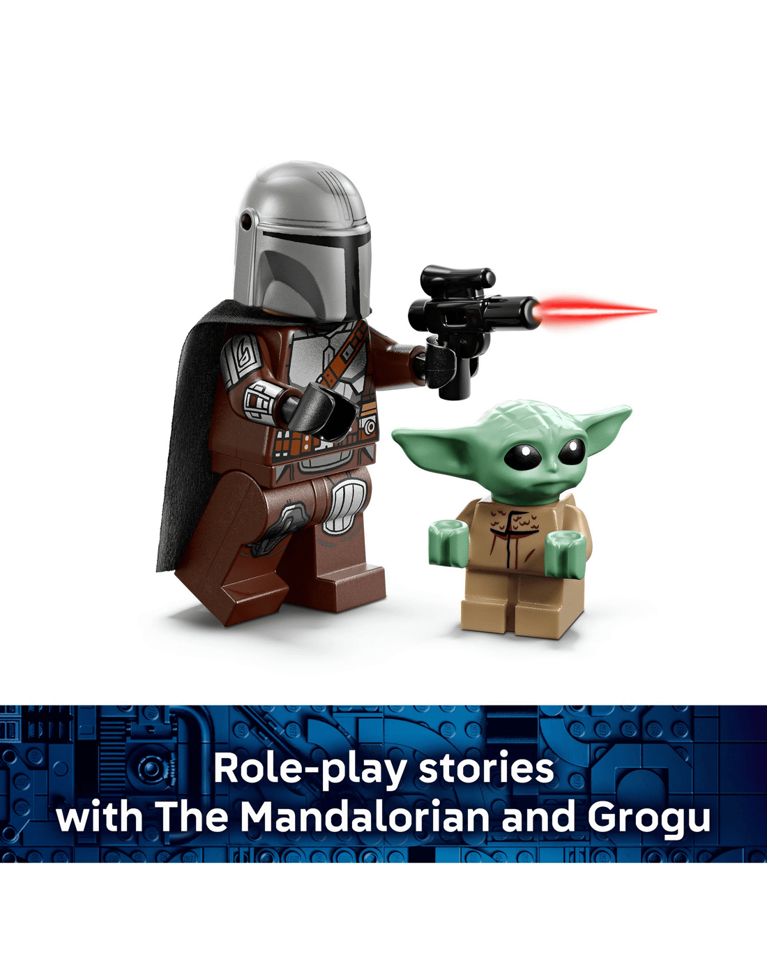 - 2 Star Wars Characters - Role-play fantasy adventures with The Mandalorian LEGO minifigure, equipped with a blaster pistol that converts into a blaster rifle, and the Grogu LEGO figure