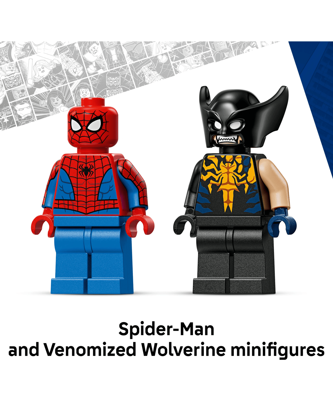 - 2 LEGO Marvel Minifigures - Inspire the imaginations of young Super Heroes with Spider-Man and Venomized Wolverine, making his first appearance in a buildable LEGO Marvel merchandise toy