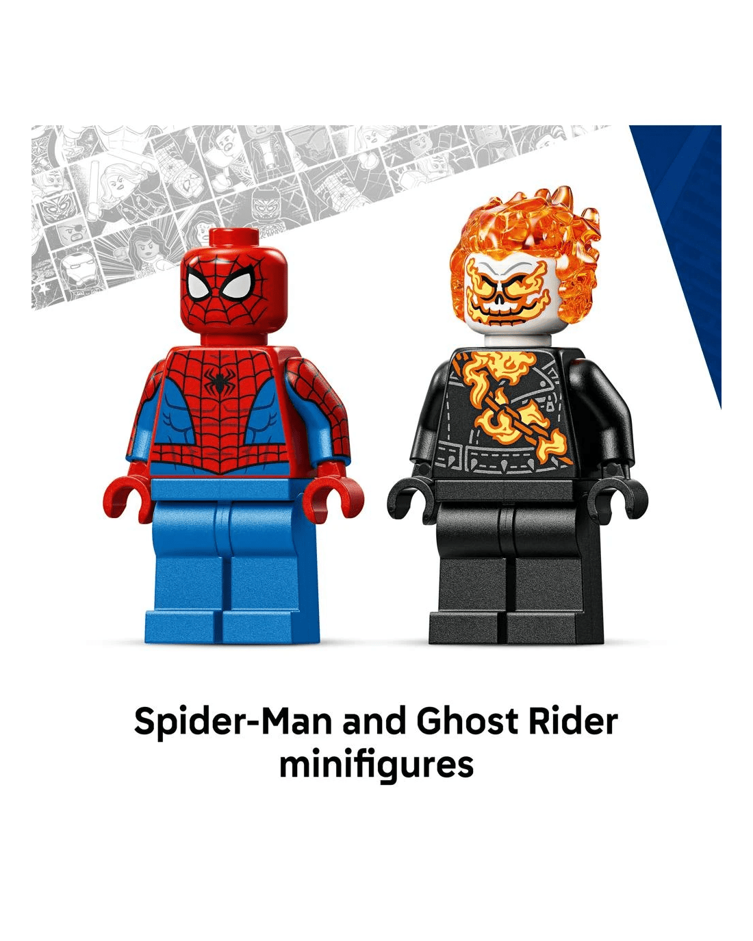 - 2 LEGO Marvel Minifigures- The web-slinging Spider-Man and Ghost Rider, the flame-haired skeleton, inspire kids’ imaginative play