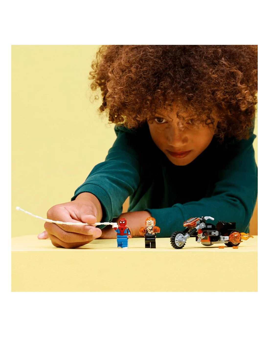 - Recreate Epic Battle Action - Kids can re-enact a high speed chase with Spider-Man launching his web rope at Ghost Rider’s motorcycle, as flames shoot from its exhaust pipe and from the villain’s hands