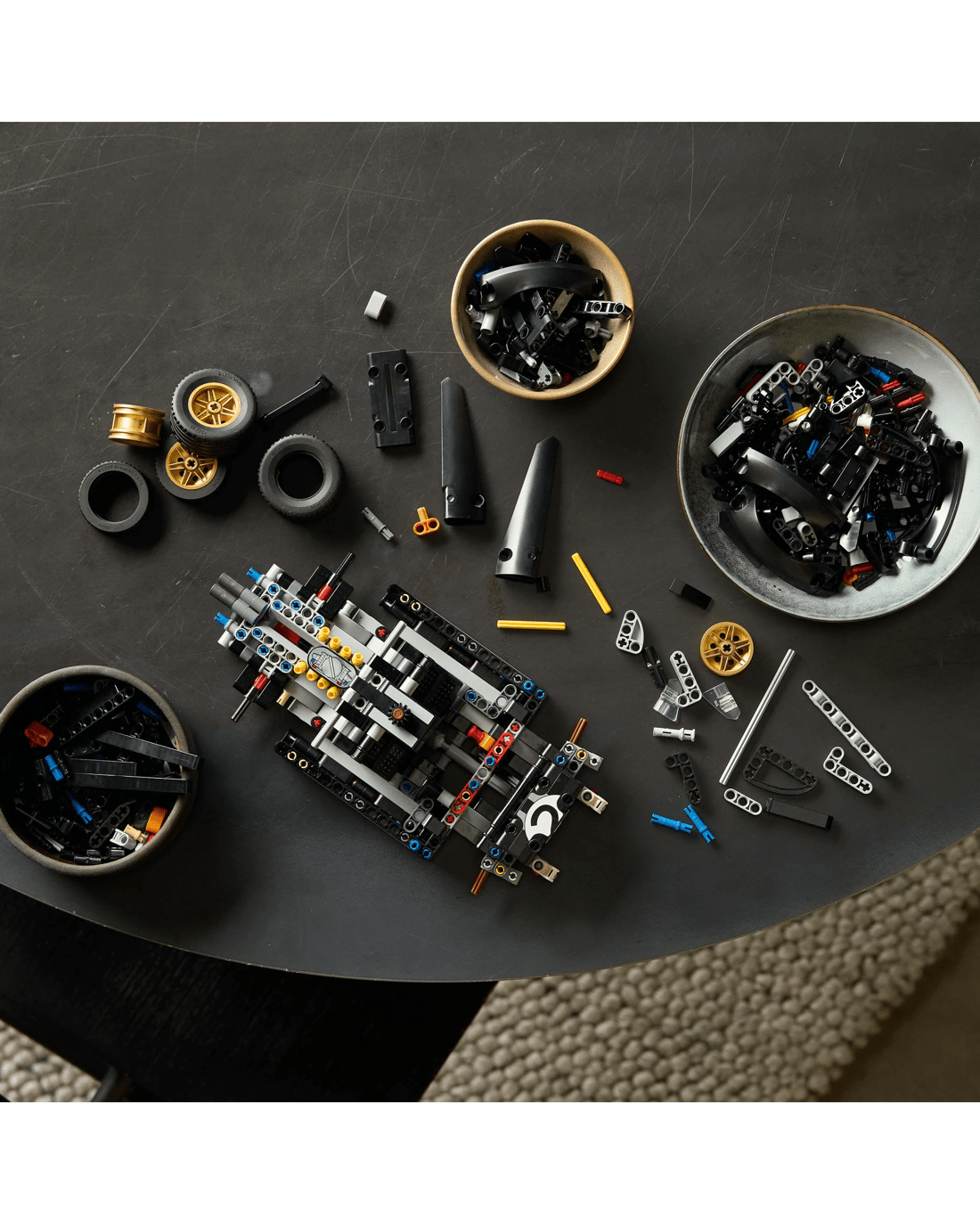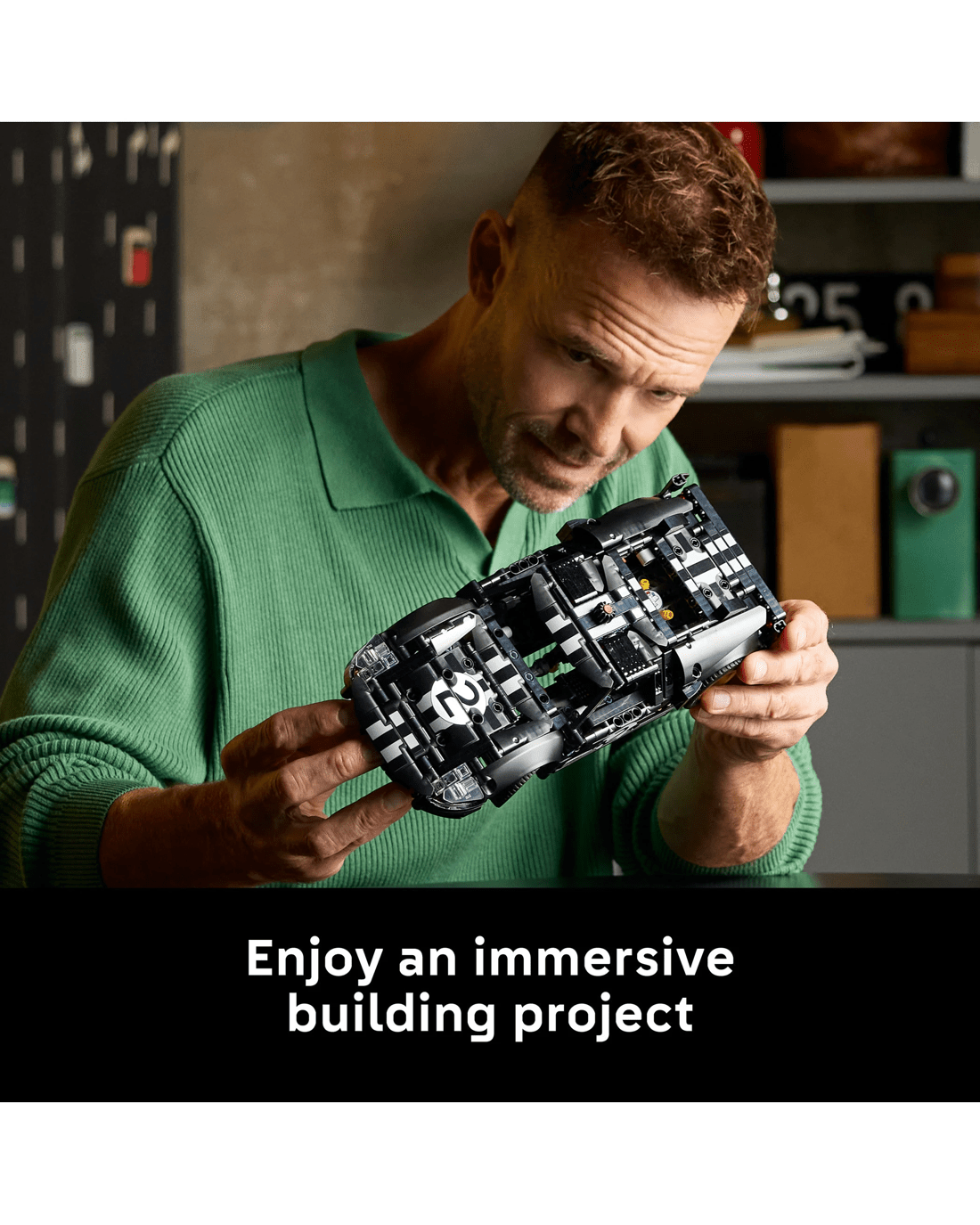 Have fun exploring the detailed features of the set. Use the knob on top of the car to steer. Check out the opening doors and admire the black-and-silver livery that’s inspired by the real-life champion car. Open the engine cover to reveal the V8 engine, then use the lever inside to open the bonnet. After you’ve built it, you can proudly display your race car in any room or office.