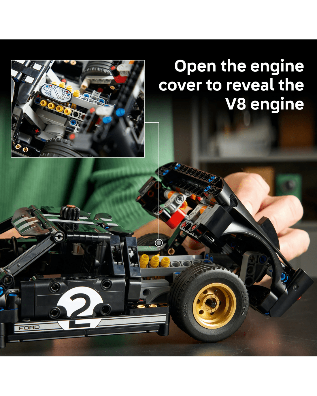Drive to victory and celebrate a motoring icon with this LEGO Technic 1966 Ford GT40 MKII Race Car model for adults. Car lovers, racing fans and building enthusiasts can invoke the spirit of an iconic endurance race with this realistic model version of an iconic vintage car.