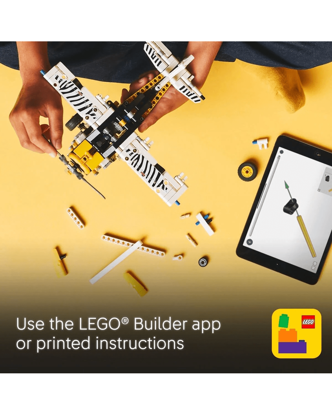 - Aircraft toy for kids - Build and explore a fun LEGO Technic Bush Plane toy with spinning propeller, adjustable ailerons and 4-cylinder piston engine