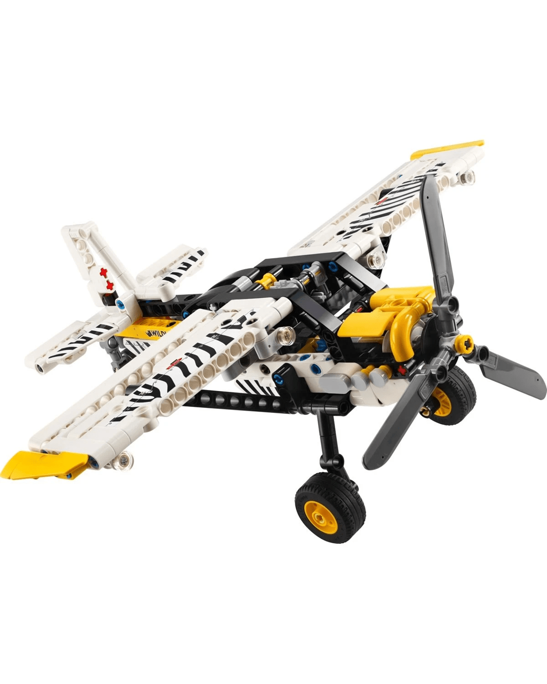 Let imaginations fly with this fun aircraft toy for kids. Boys and girls can enjoy building the LEGO Technic Bush Plane before trying out its exciting features. Push the lever to activate the spinning propeller. Adjust the ailerons on the side wings and the rear wing. Then open the engine cover to admire the four-cylinder piston engine. This kids' toy plane features a fun zebra print design to reflect the role that bush planes play in wildlife conservation.