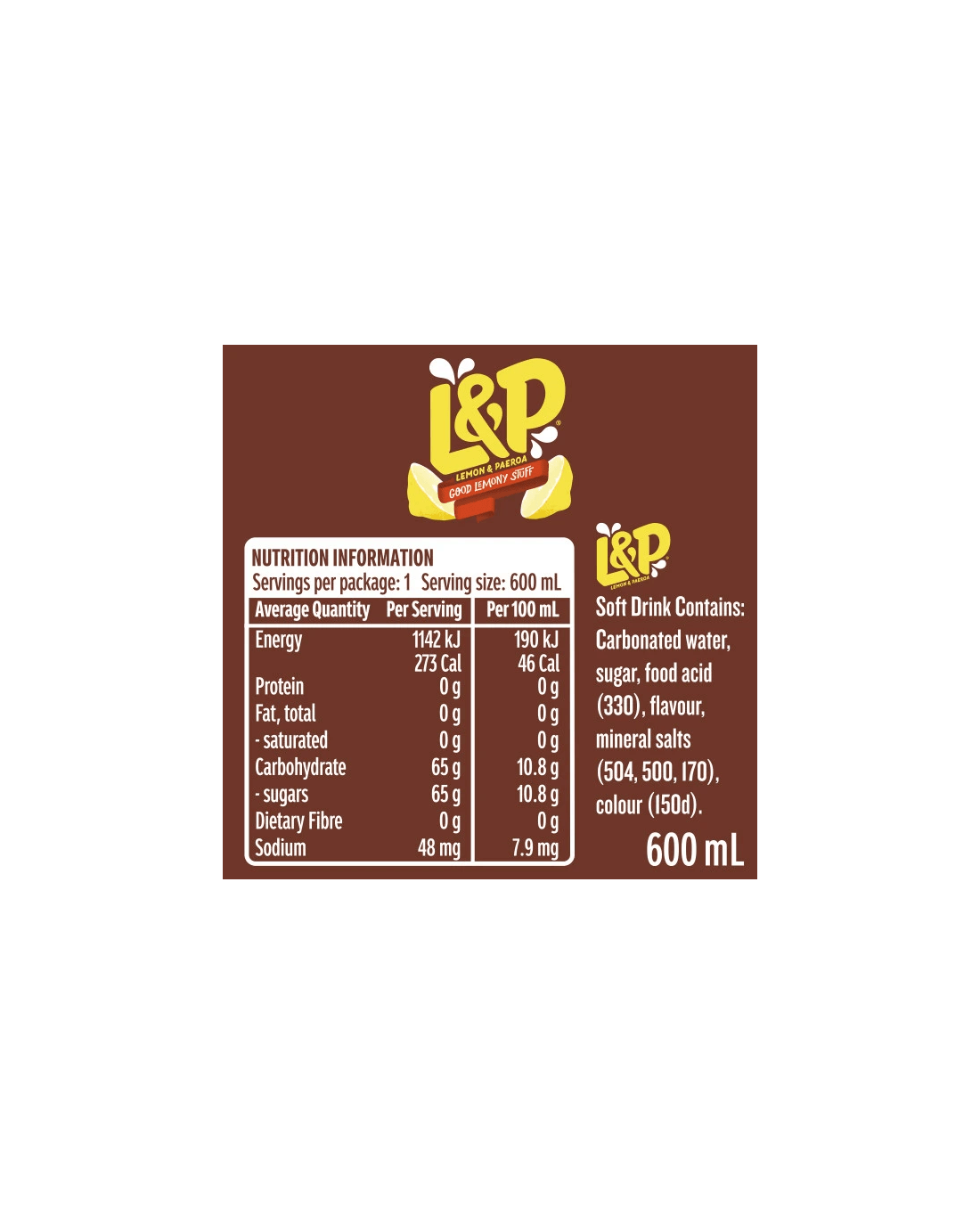 Lemon & Paeroa Good Lemony Stuff Drink 600ml