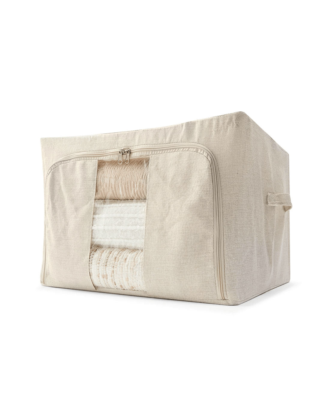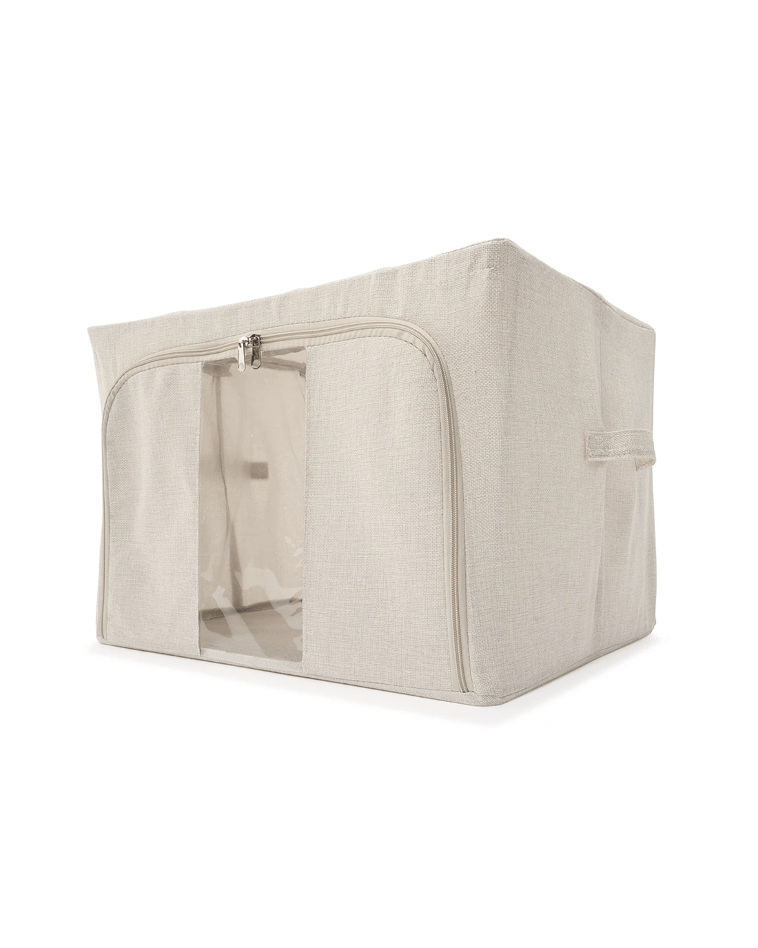 Linen Look Collapsible Box with Window - Large, Beige