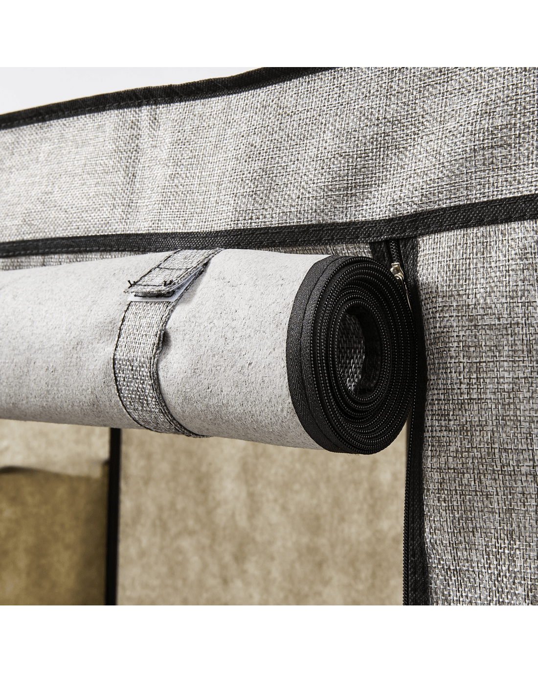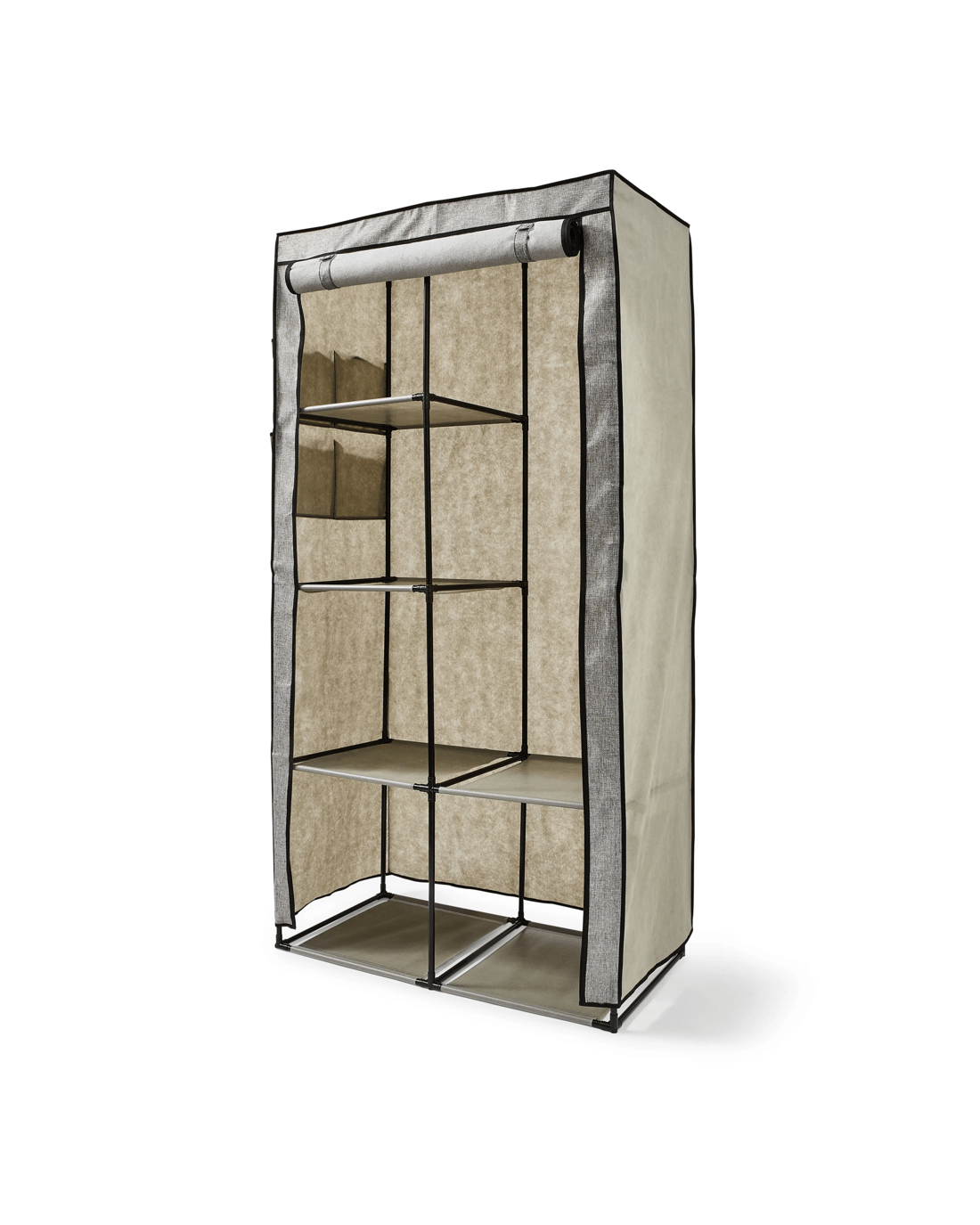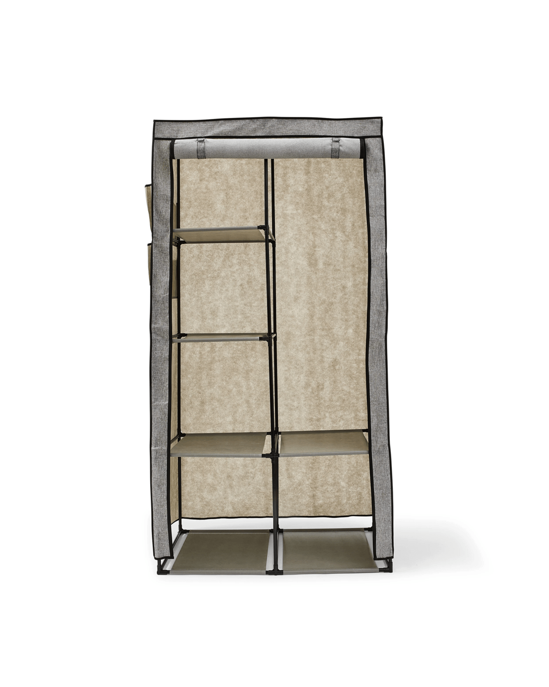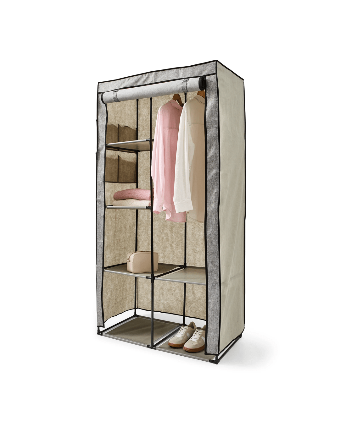 This Linen Look Covered Wardrobe will offer a practical storage solution for your clothes and accessories. With its fabric cover and spacious design, it will help keep your belongings organised while adding a simple, coordinated touch to your room.