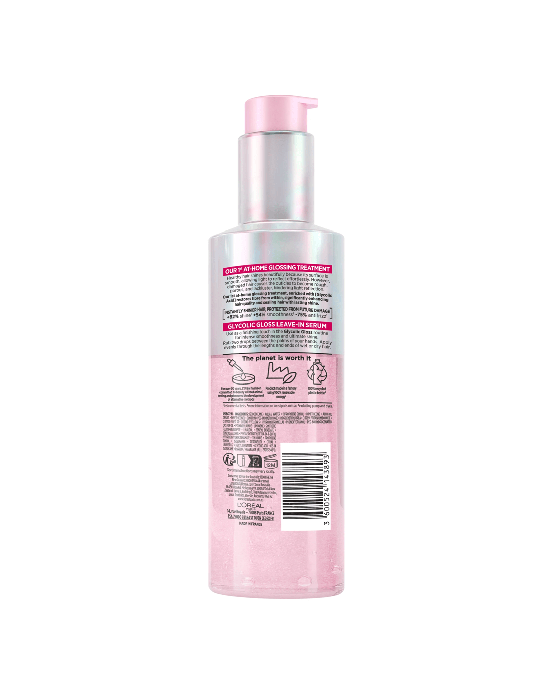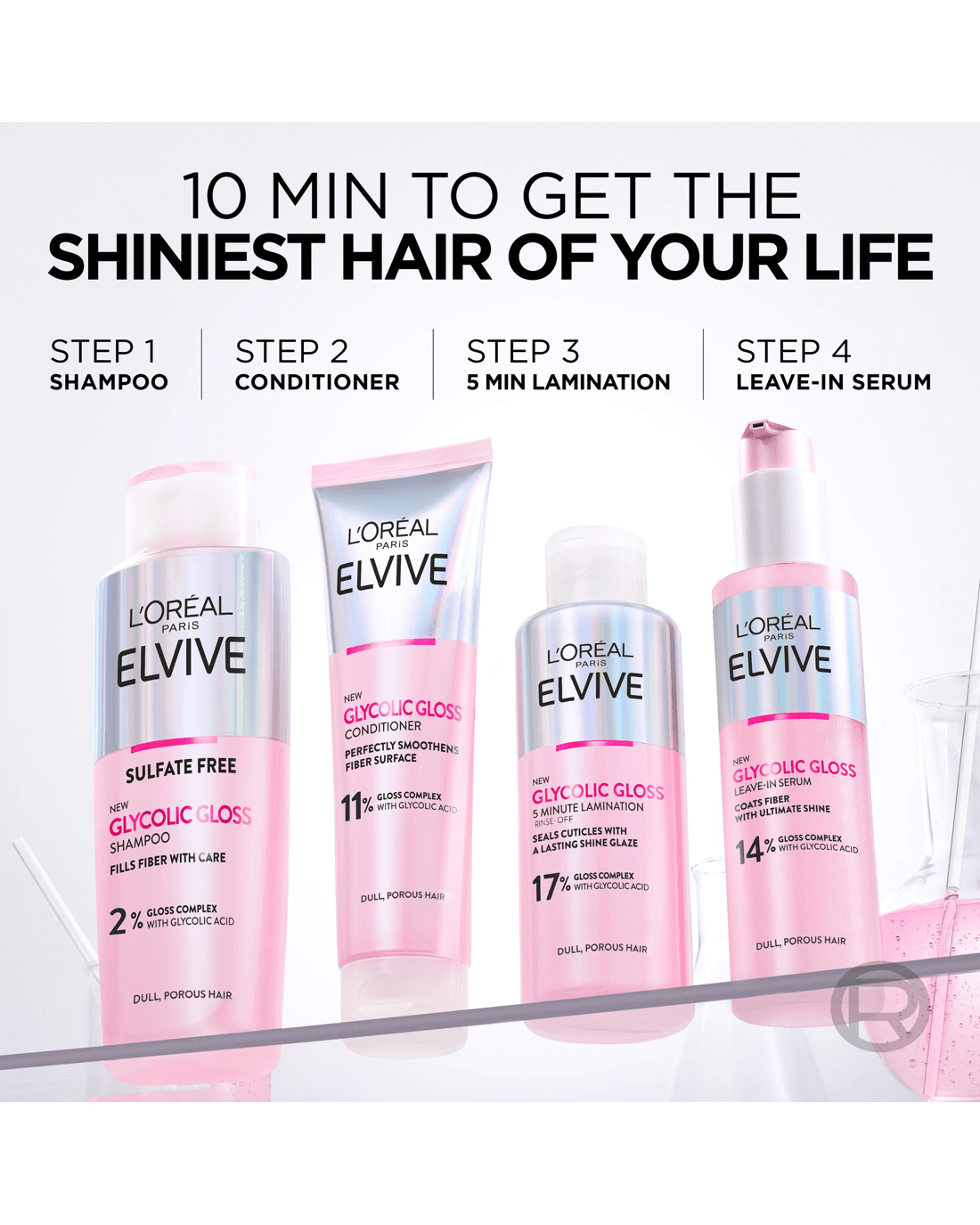 Healthy hair shines beautifully because of its surface is smooth, allowing light to reflect effortlessly. However, damaged hair causes the cuticles to become rough, porous and lackluster, hindering light reflection. This 1st at-home glossing treatment by L'Oreal Paris is powered by Glycolic Acid. It restores the hair fiber from the inside to intensely improve hair quality while providing your hair with lasting shine. Instantly Shiner hair, protected from future damage +82% Shine *Instrumental test after application of shampoo+ conditioner+ lamination treatment