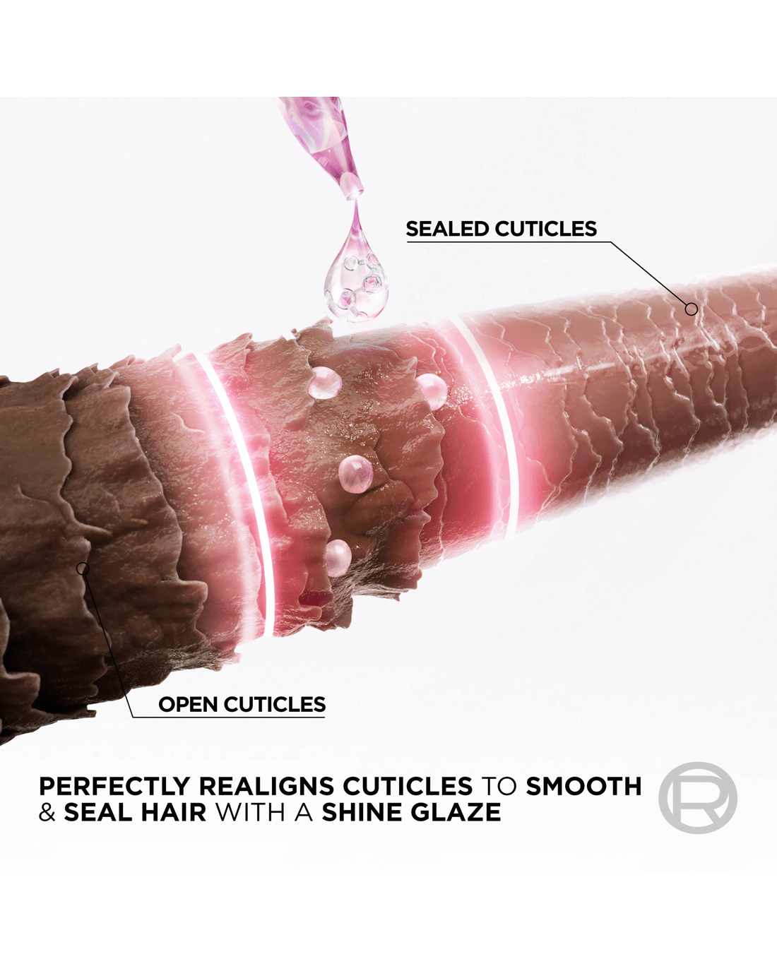 - Perfectly realigns cuticles to smooth and seal hair with a shine glaze