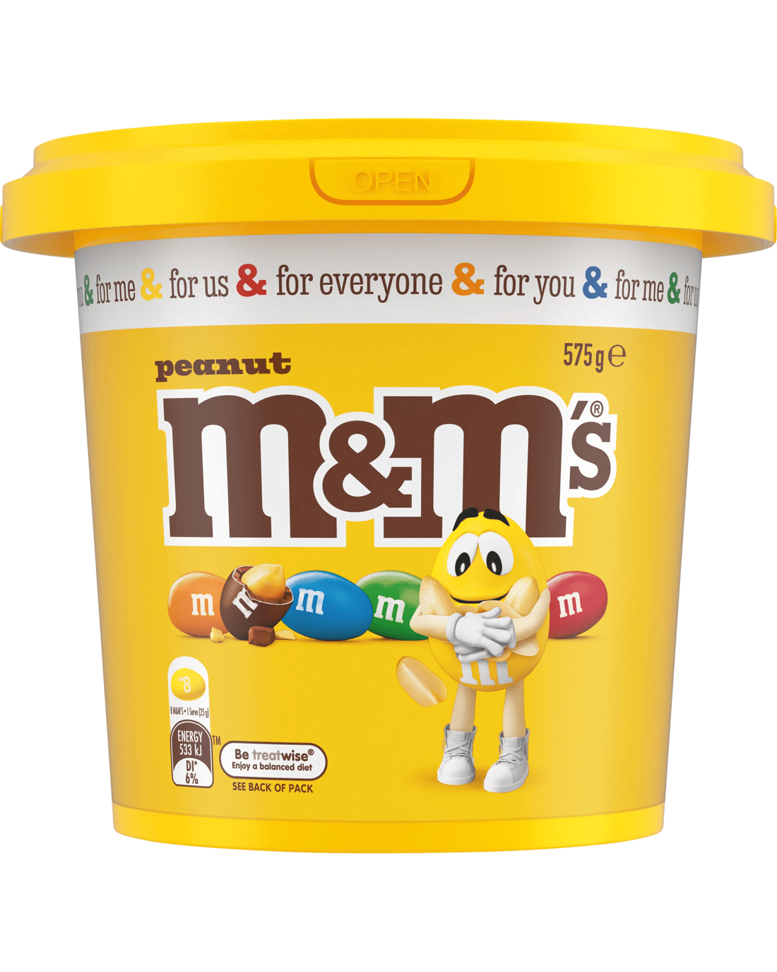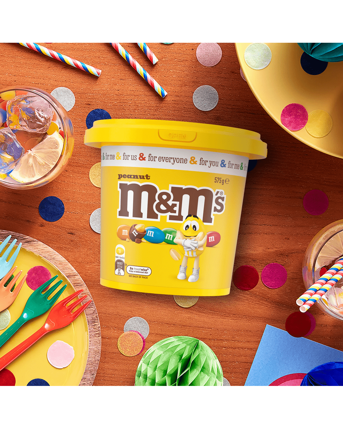 - Includes a 575g bulk chocolate party bucket of M&M's peanut milk chocolate bite-size snacks