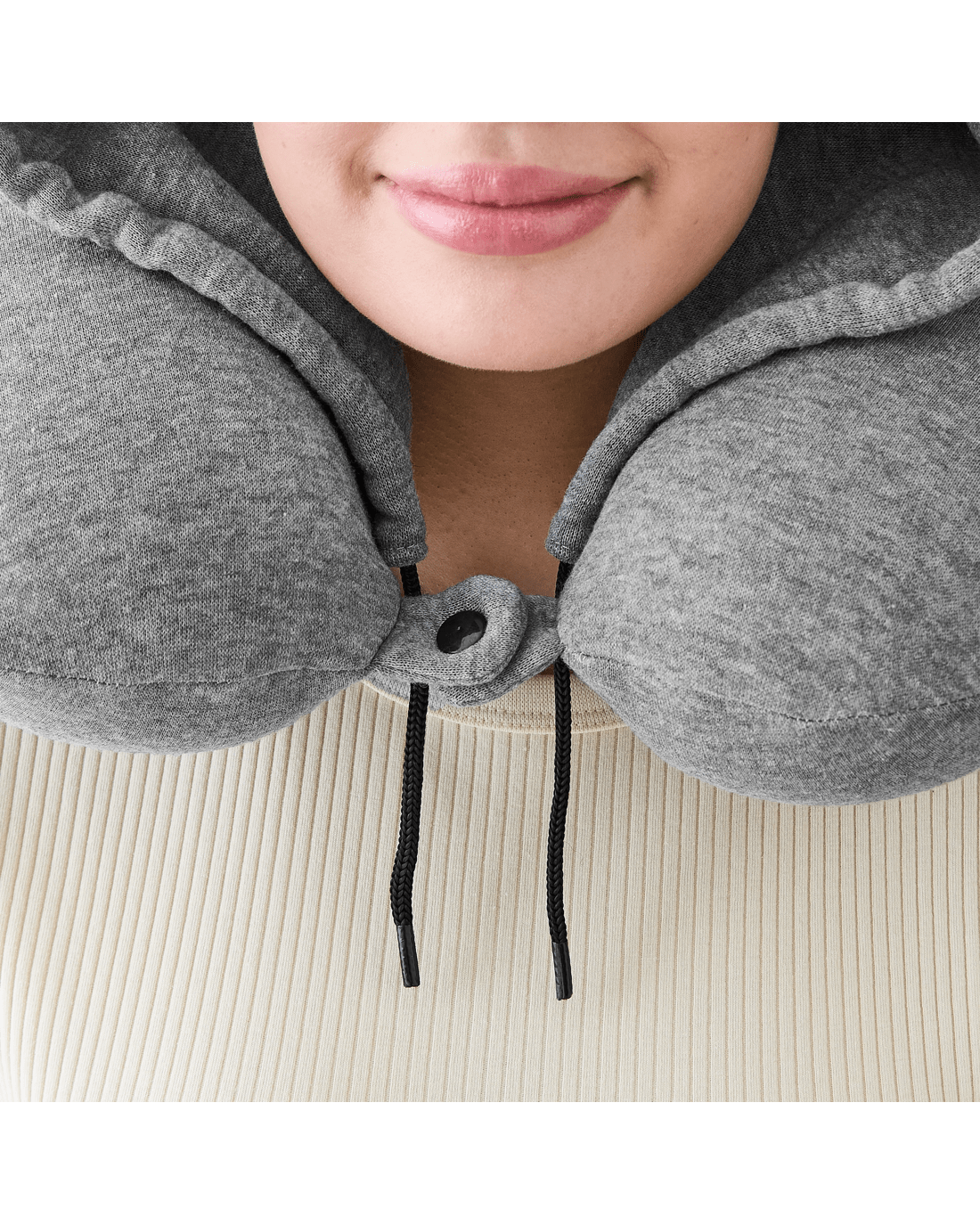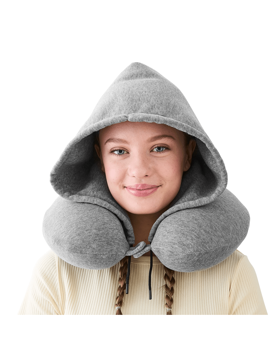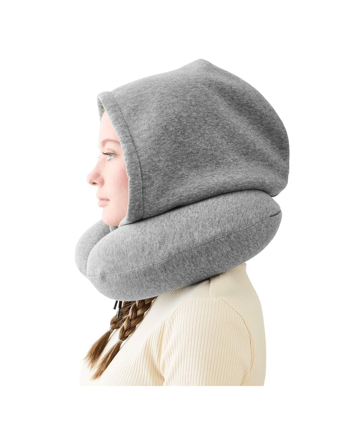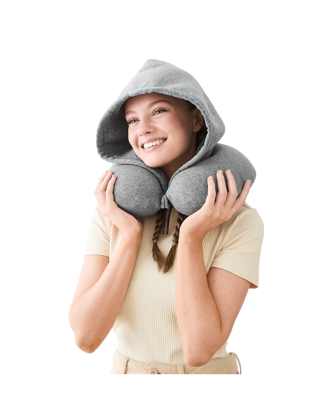 The Memory Foam Travel Pillow with Hood is perfect for comfortable naps on the go. Its hooded design reduces provides a more restful and comfortable travel experience.