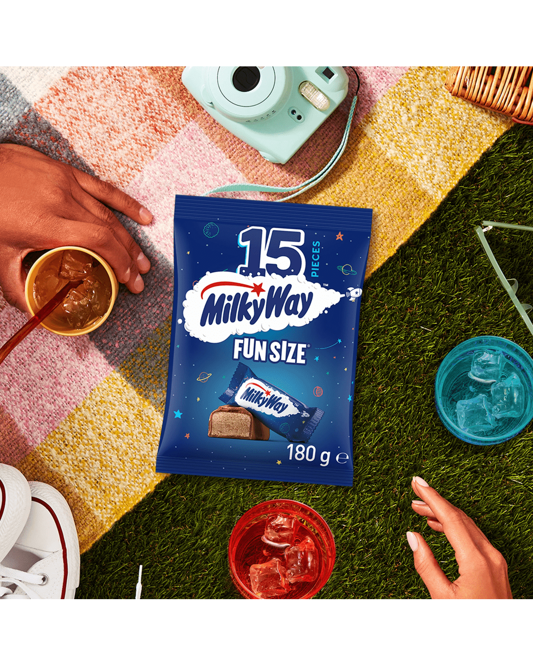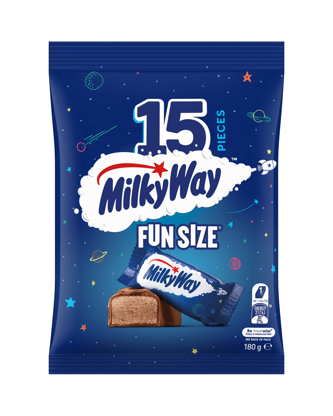 Whip out this Milky Way Fun Size Chocolate Party Share Bag whenever you're entertaining, and you'll delight the crowd. Each individually wrapped Milky Way chocolate bar features lightly whipped chocolate malt flavoured nougat enrobed in smooth milk chocolate. Yum! With 15 pieces in the party bag, you can fill up Halloween trick-or-treat bowls, create lolly bags, or decorate the party table with these much-loved chocolate treats. Make sure you stash some bags in the pantry, as these mess-free light chocolate snacks are perfect for packed lunches, road trips and family movie night treats!