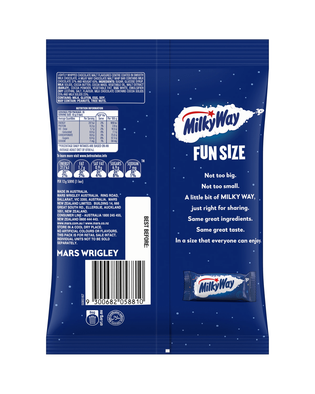 - Includes 15 x Milky Way Fun Size Chocolate Malt Whip Bars