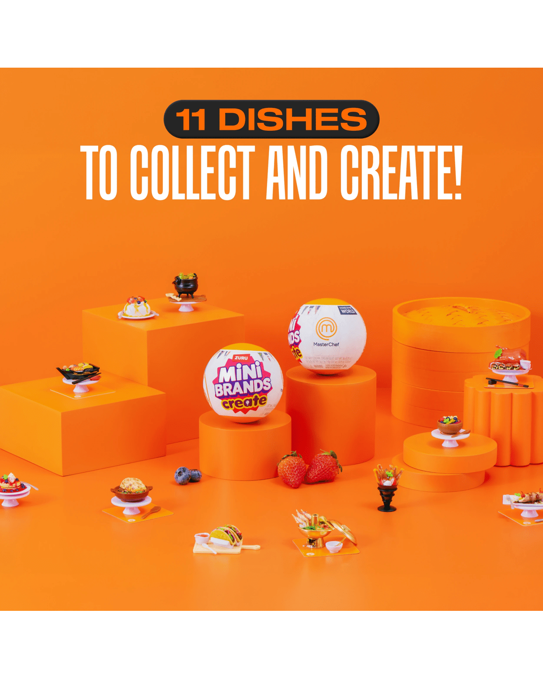 - Collect and create: Each Mini Brands Create MasterChef capsule is packed with Mini MasterChef ingredients and accessories to create 11 new MasterChef dishes