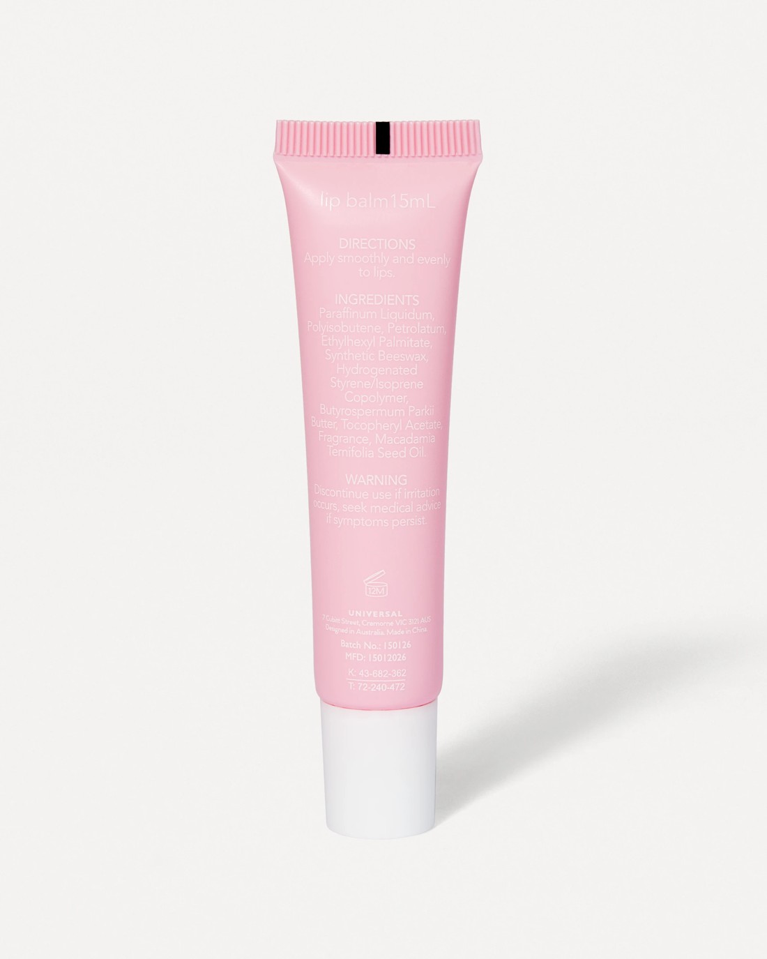 - Lip balm: 15ml