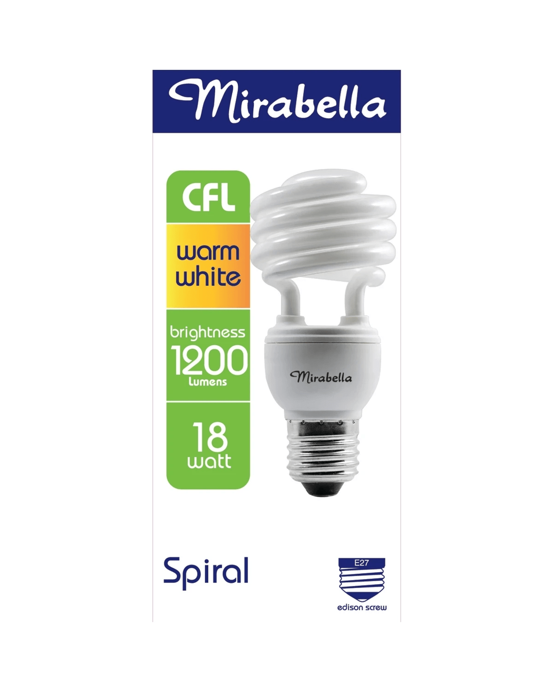 Mirabella E27 18W Warm White Spiral CFL Bulb