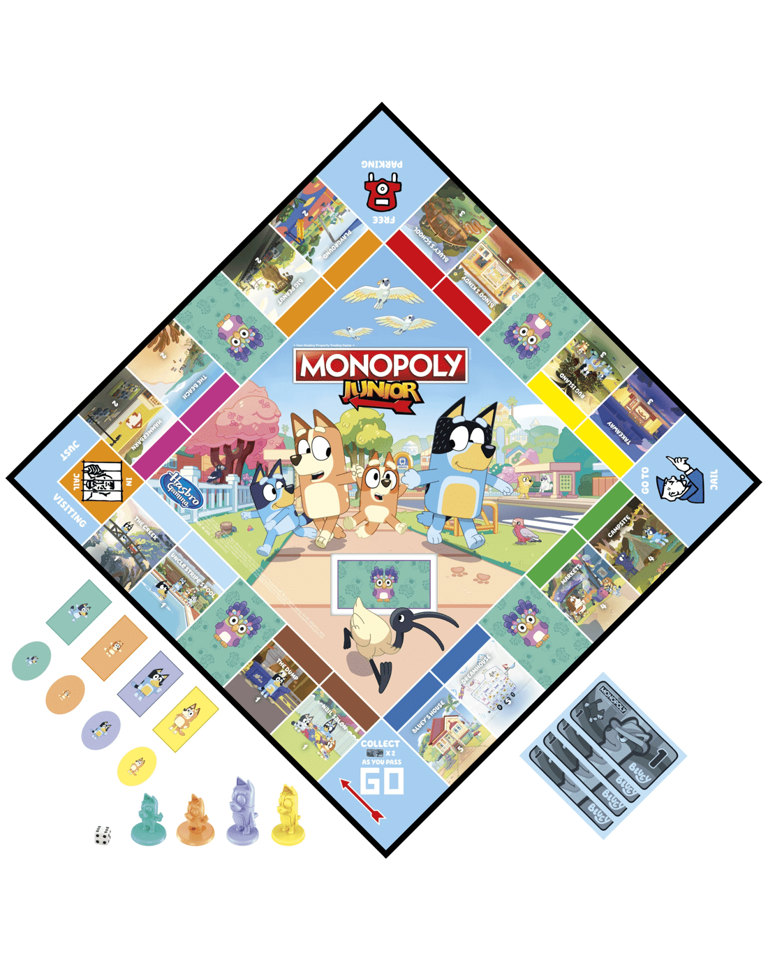 - Bluey character monopoly junior tokens: In the Monopoly Junior: Bluey Edition game, players go around the board as Bluey, Bingo, Mum or Dad