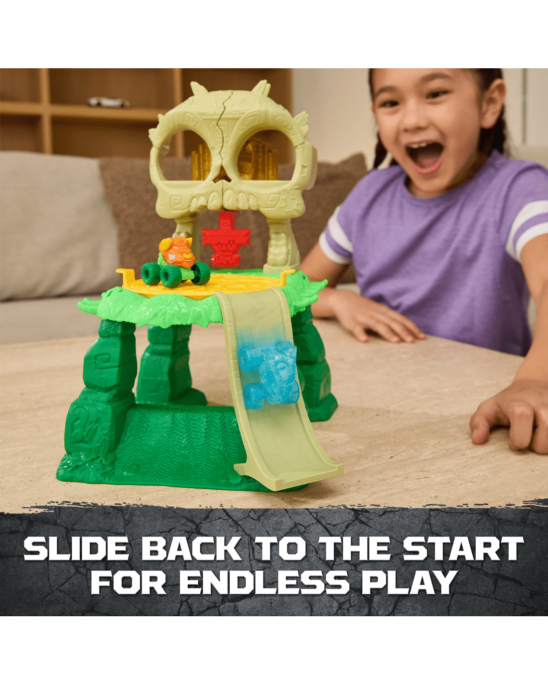 - Slide back to the start for endless play