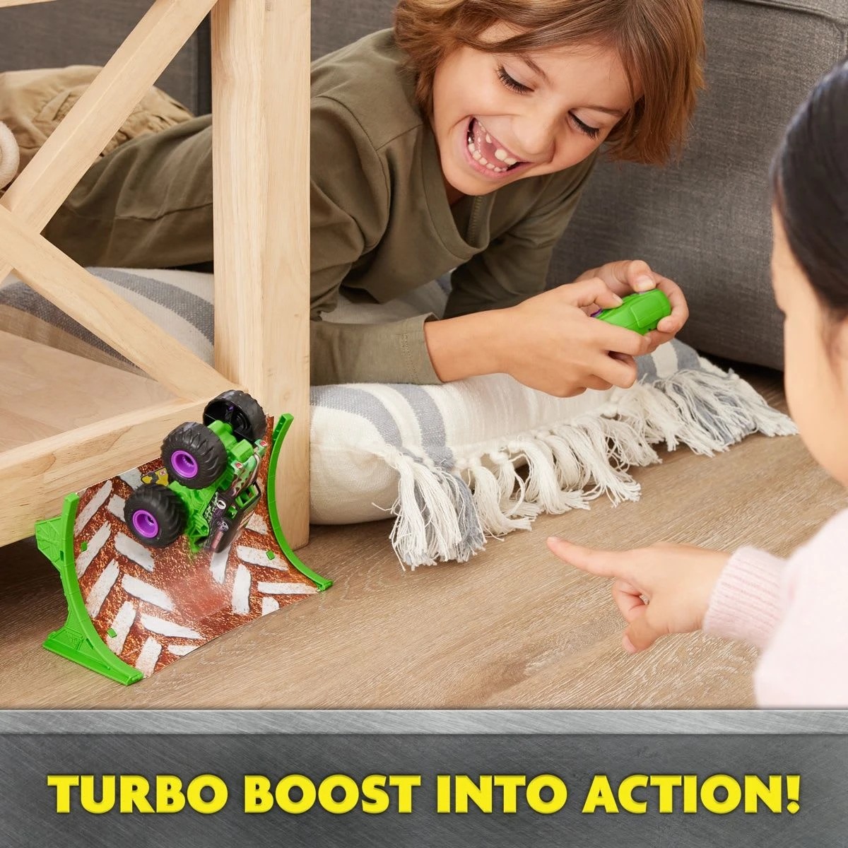 - Includes ramp: Turn any space into a Monster Jam arena with the included ramp. Perform epic stunts with your Monster Jam trucks. Featuring authentic graphics, oversized tyres and highly realistic details!