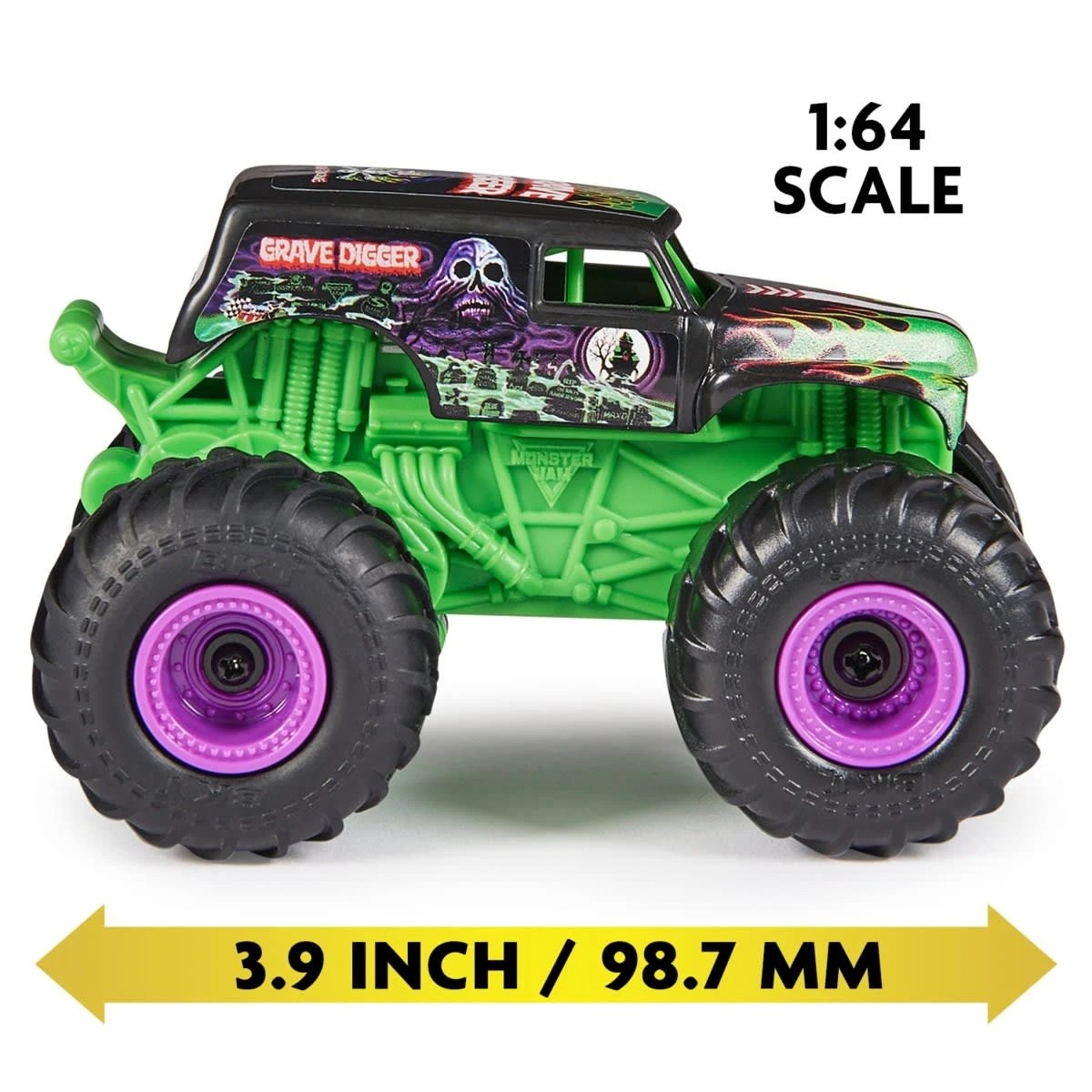 - Official grave digger: This realistic 1:64 scale Grave Digger RC truck looks like the real thing and comes with a controller and a USB cable to recharge the toy truck