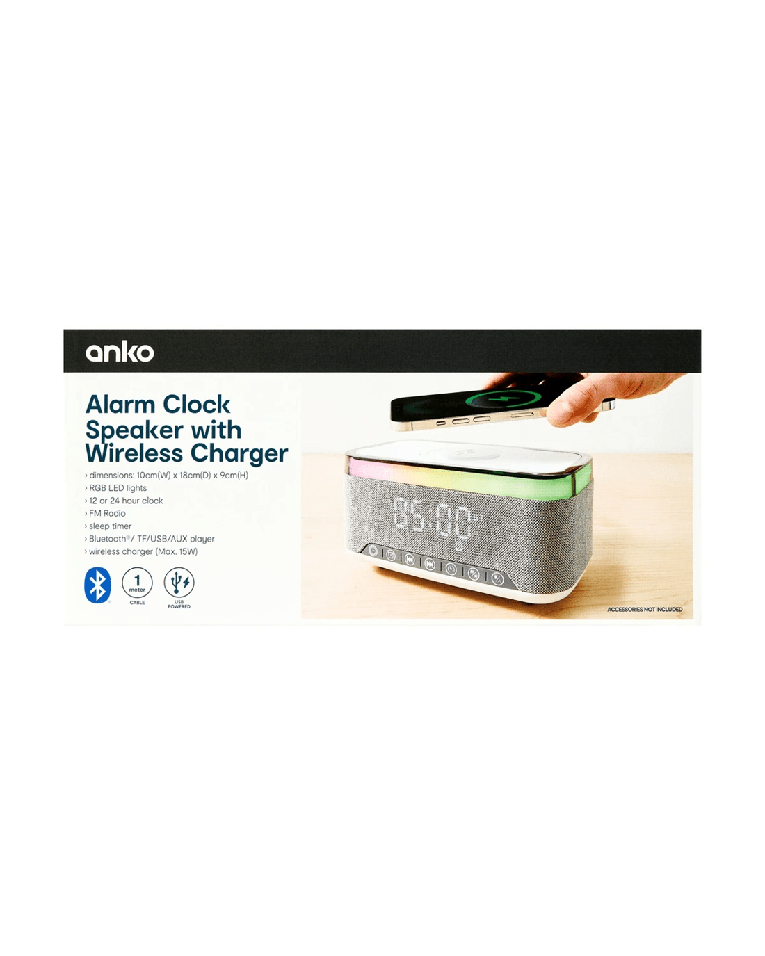- Includes 1 x alarm clock, 1 x USB-C cable and 1 x instruction manual